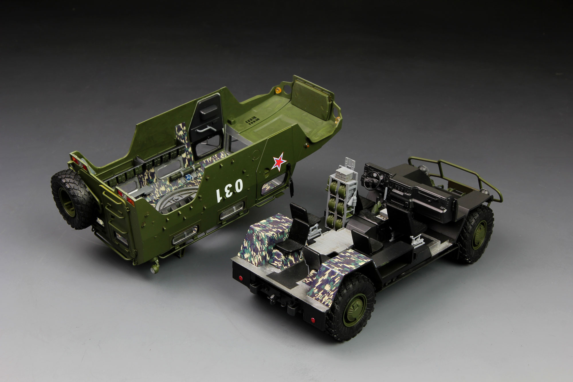1/35比例俄罗斯 GAZ-233014 STS “虎”式高机动装甲车塑料拼装模型,全长165mm,宽66mm。独具俄式风格的车体造形忠实再现;附带车厢内室组件;车门可制作成关闭或开启状态;车顶转盘可旋转;精美水贴再现车厢内壁迷彩蒙布效果;两种涂装方案可供选择。