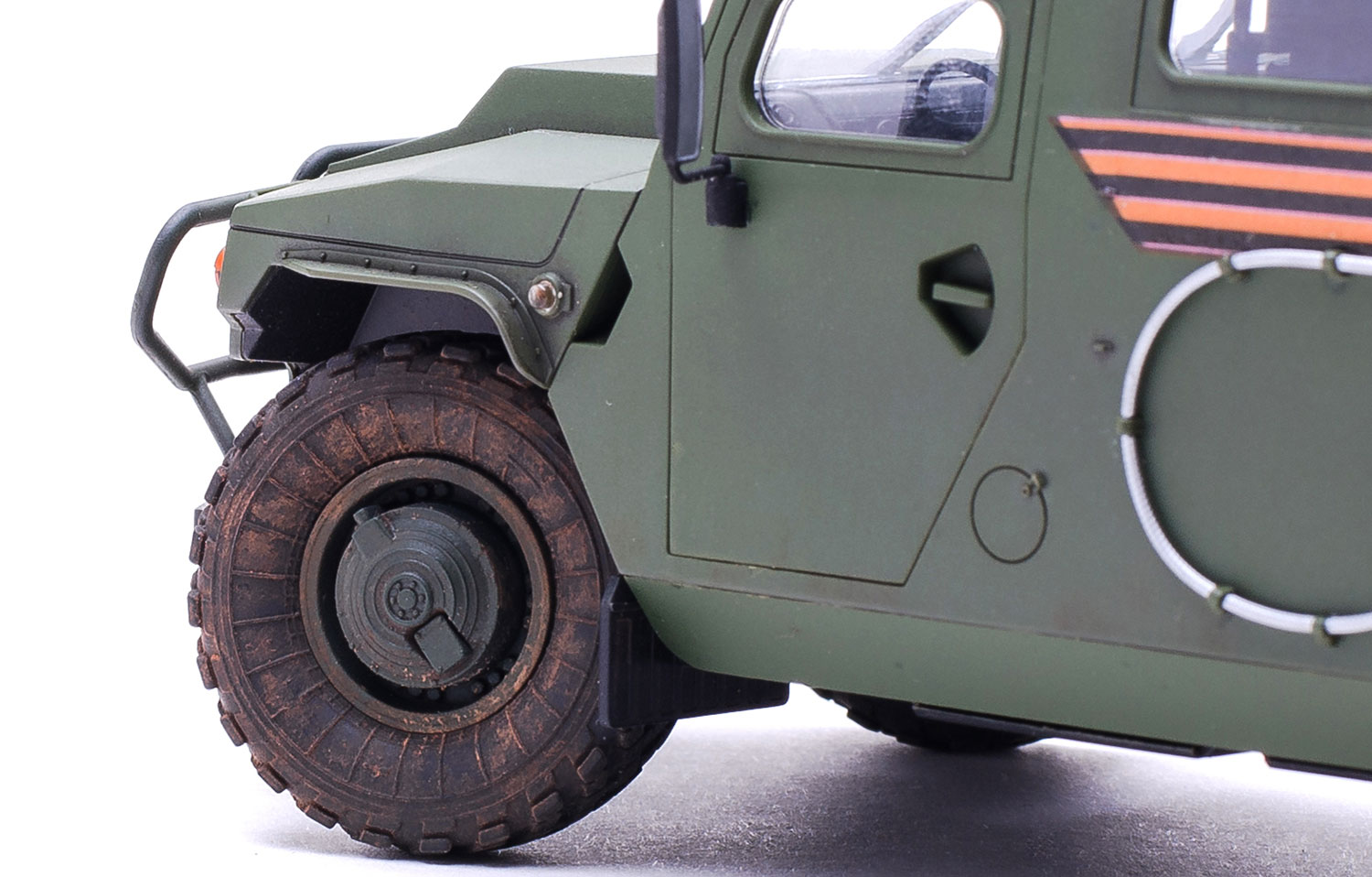 模型全长165mm,宽66mm。带乘员舱内构;所有车门可以选装成关闭或敞开状态;车顶转盘可旋转;所有车灯均为透明零件;前轮可活动转向;附精密金属蚀刻片。