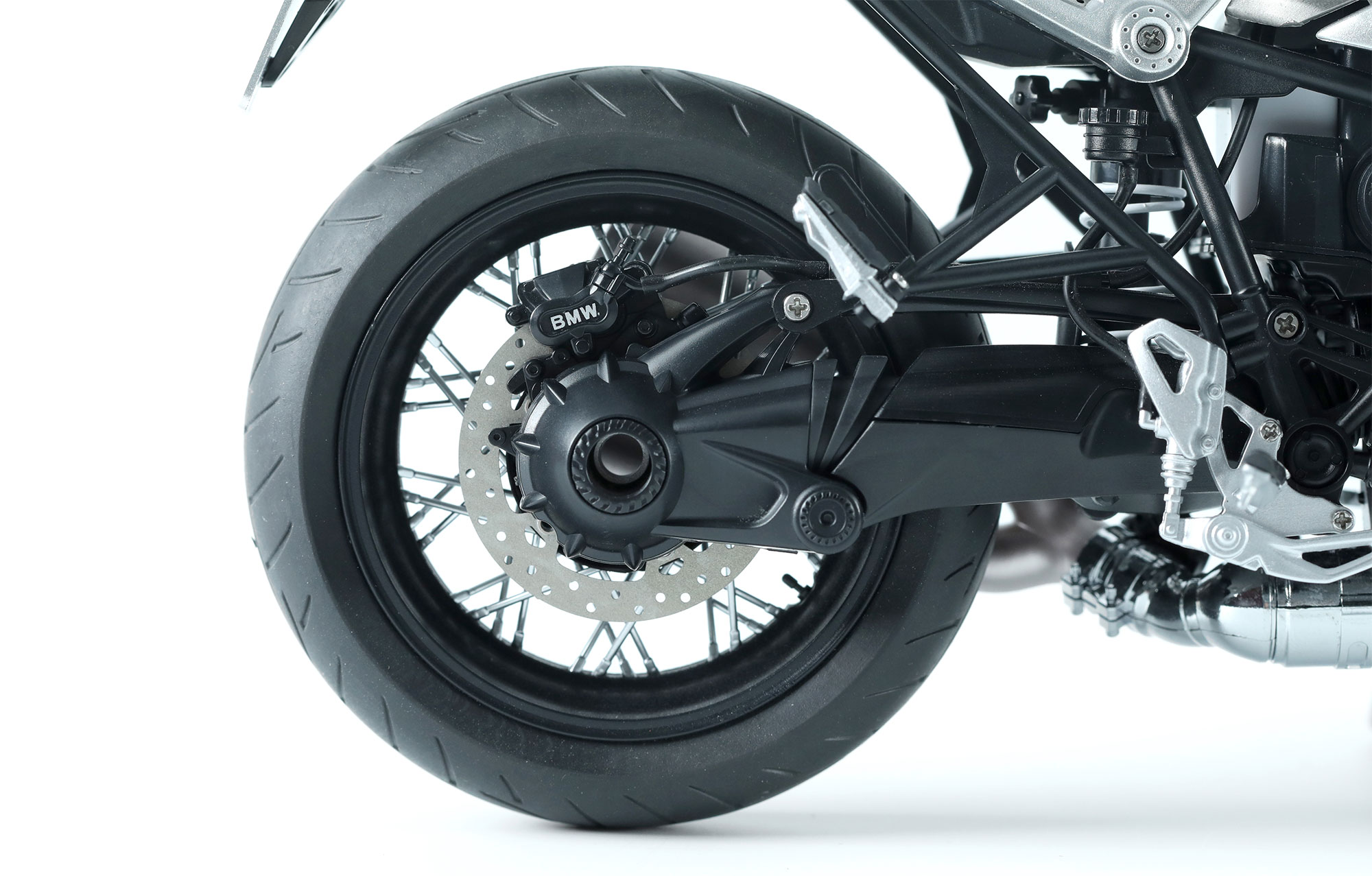 MT-003s宝马R nineT是MENG与BMW联合推出的1/9比例悦色版拼装模型套件。该套件完成后,车长236毫米,宽99毫米,高141毫米。悦色版拼装模型采用免胶预上色设计,只需组装,无需喷涂。模型的前后避震及方向阻尼器均可活动。模型的车轮辐条、大灯灯碗、排气管前段等零件采用电镀工艺。模型所有车灯均为透明零件。后视镜采用镜面贴纸。套件包含金属材质的油箱和驼峰;软胶材质的座椅和靠背;不锈钢蚀刻片和免上色蚀刻片。套件可选择制作单座型或双座型。