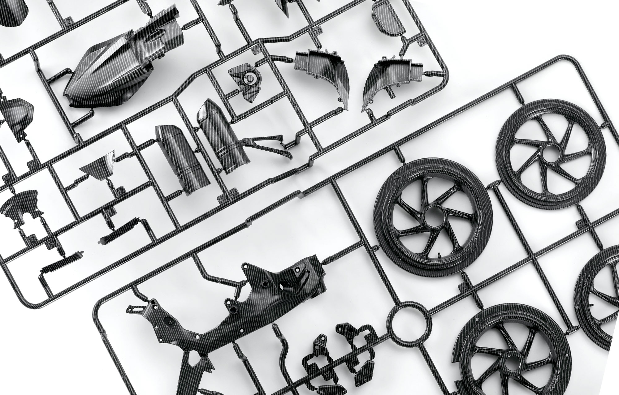 MT-004s宝马HP4 RACE是MENG与BMW联合推出的1/9比例悦色版拼装模型套件。该套件完成后,车长230.5毫米,宽84.5毫米,高132毫米。悦色版拼装模型采用免胶预上色设计,只需组装,无需喷涂。全车零件进行精美的预上色处理,碳纤维零件预制碳纤维纹理,质感十足、效果逼真。模型精致还原WSBK赛车专用直列四缸发动机、精彩诠释BMW全球首创全碳纤维车架。模型的前后避震及方向阻尼器均可活动。套件包含软胶材质的座椅和不锈钢材质的刹车盘。