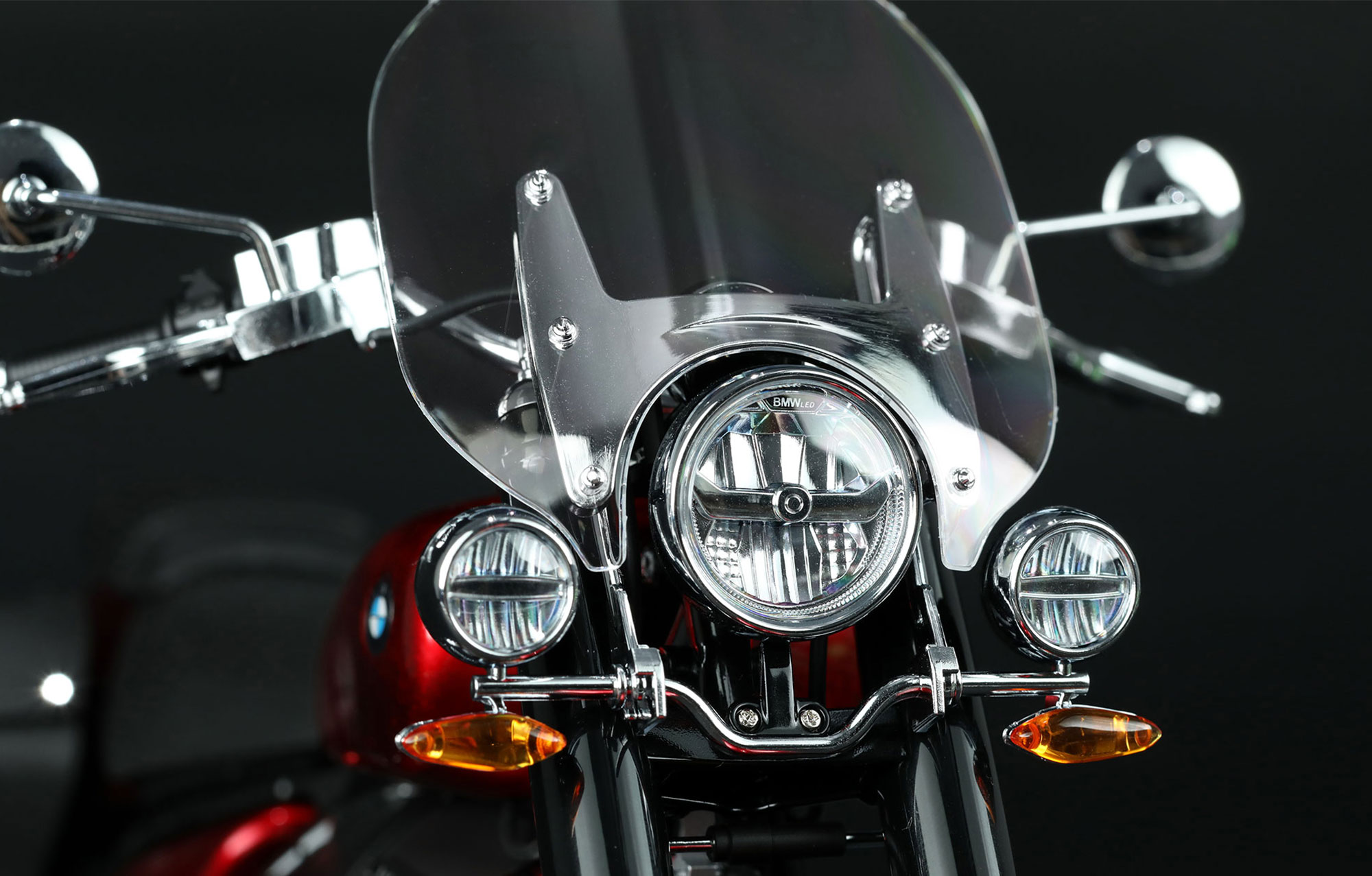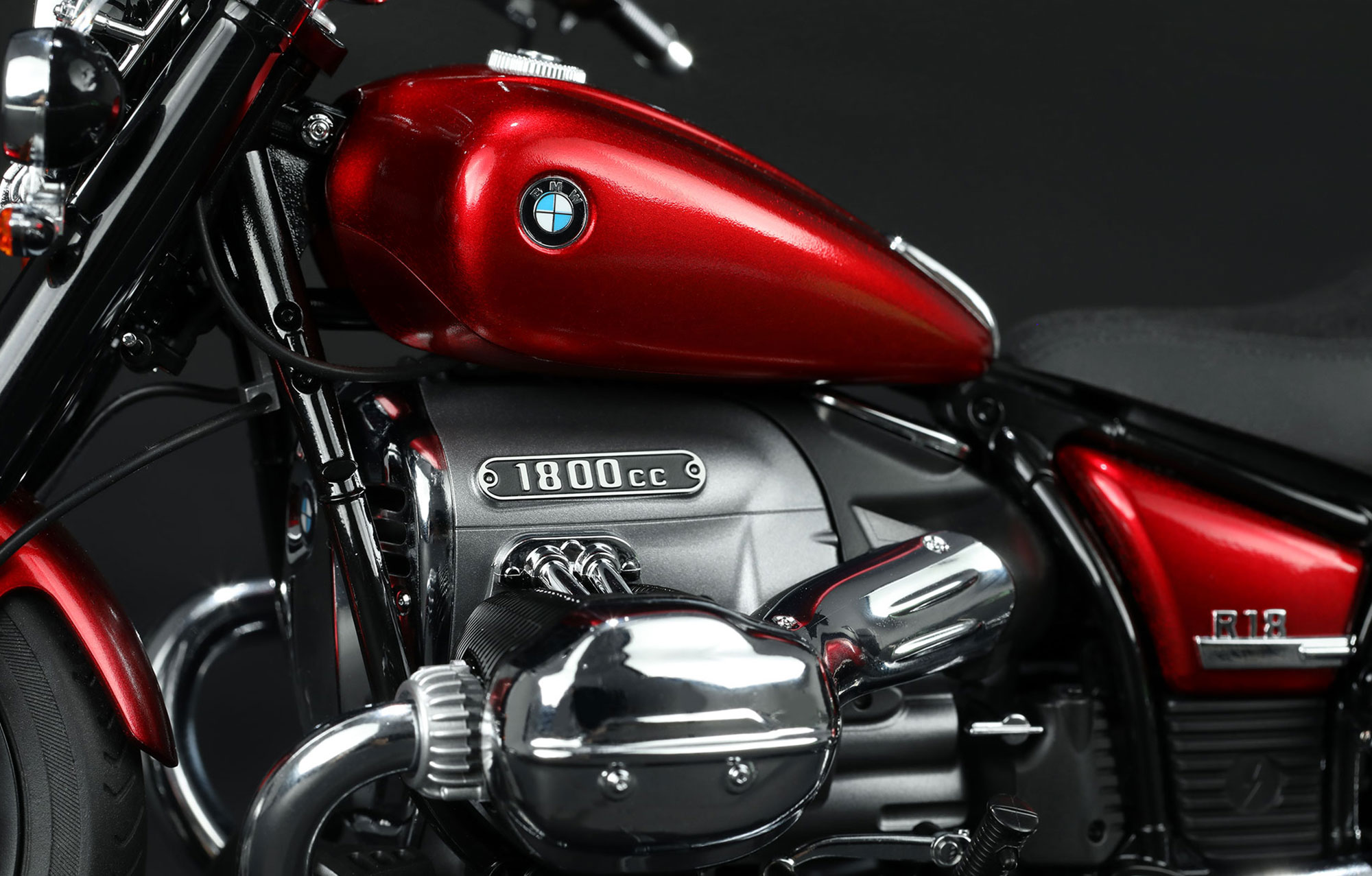 MT-006t 宝马 R 18 传承者巡航摩托车 火星红配色版(悦色版)是MENG与BMW联合推出的1/9免胶预上色拼装模型套件。该套件拼装完成后,车长269毫米,宽113毫米,高148.7毫米。悦色版拼装模型采用免胶预上色设计,只需组装,无需喷涂。全车零件进行精美的预上色处理,质感十足、效果逼真。模型精彩诠释忠实再现宝马 R 18 传承者巡航摩托车经典的复古外观,精致还原水平对置“拳击手”双缸发动机。模型的前后避震及方向阻尼器均可活动,座椅和边箱由真实还原实车质感的优质软胶材质制成。套件包含不锈钢蚀刻片、镜面贴纸。
