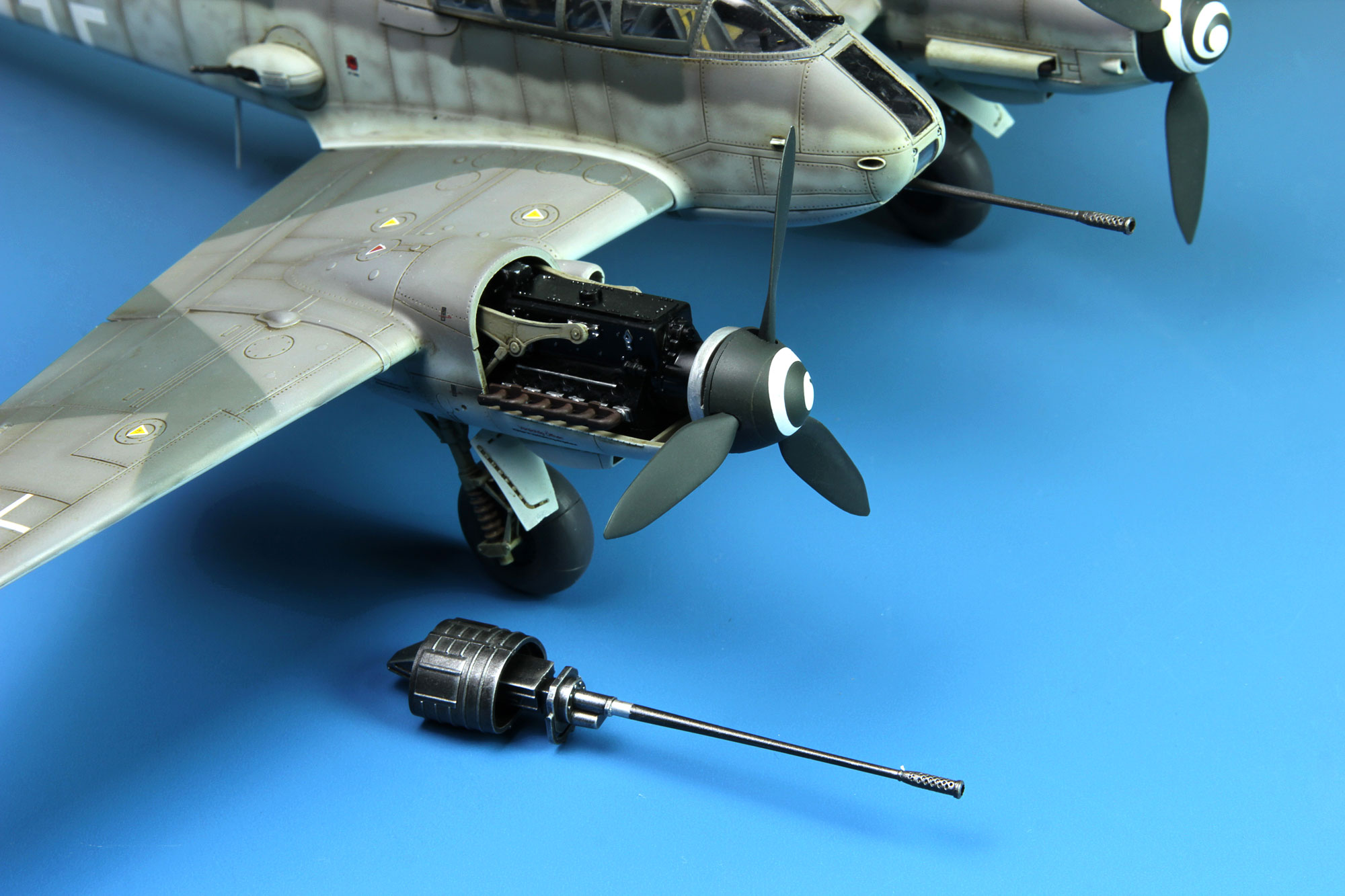 梅塞施密特 Me-410B-2/U4重型战斗机1/48比例塑胶拼装模型,全长278mm,翼展340mm。模型完美还原实机的优美线条;座舱细节丰富;发动机精密再现;机身中部机枪炮塔旋转可动;襟翼、副翼、升降舵、方向舵安装角度可以自由选择;发动机散热器可以选择打开或者关闭状态。套件包含两种涂装方案。