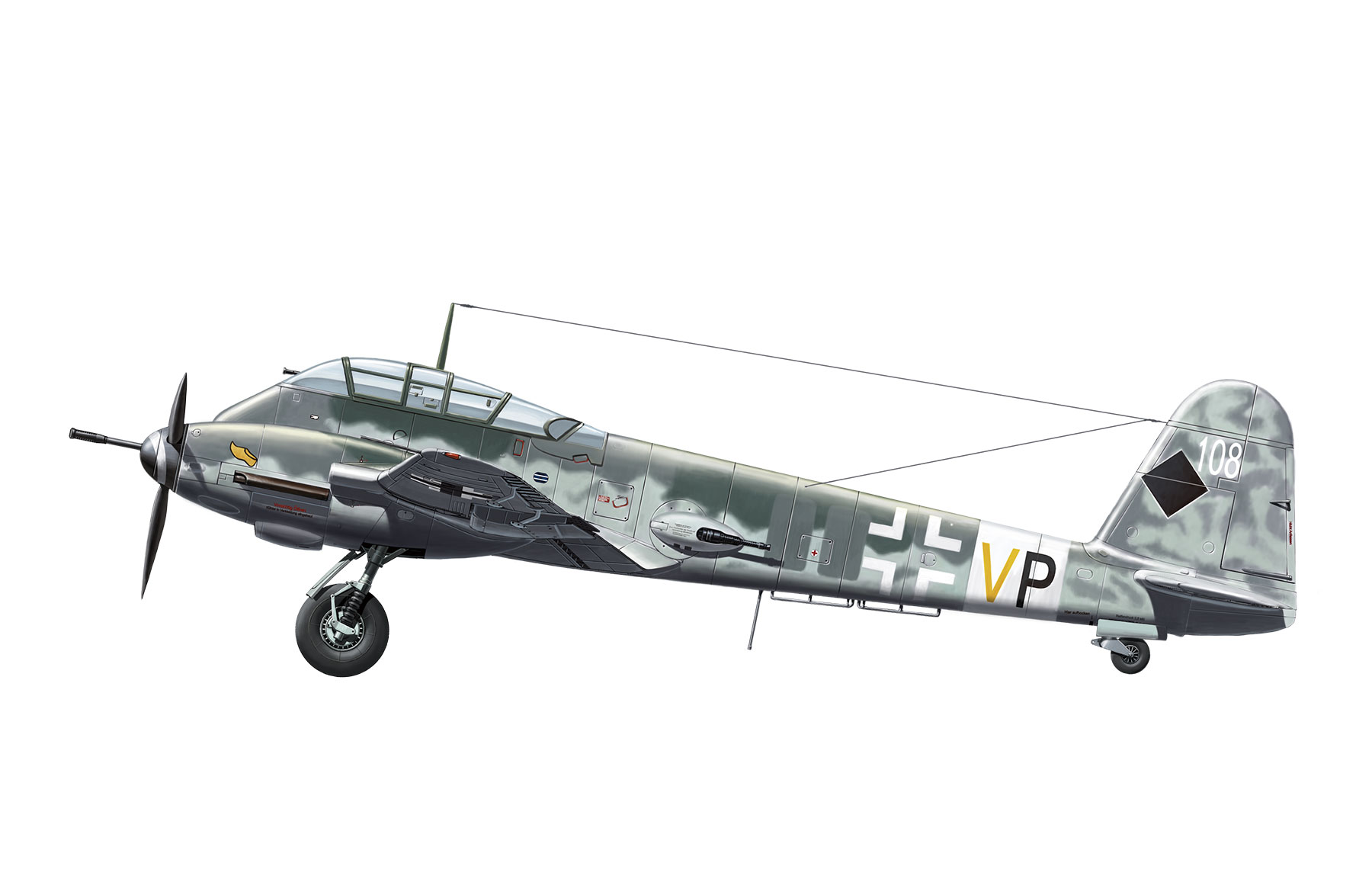 梅塞施密特 Me-410是二战期间德国空军使用的一款重型战斗轰炸机,昵称大黄蜂。该机从Me-210发展而来,换装了功率更大的戴姆勒-奔驰DB 603A型发动机,使飞行性能得到了极大的改善。Me-410B-2/U4在原机载武器基础上加装了一门BK5型50mm口径加农炮,提高了其针对轰炸机的作战能力,并有了“轰炸机杀手”的称号。