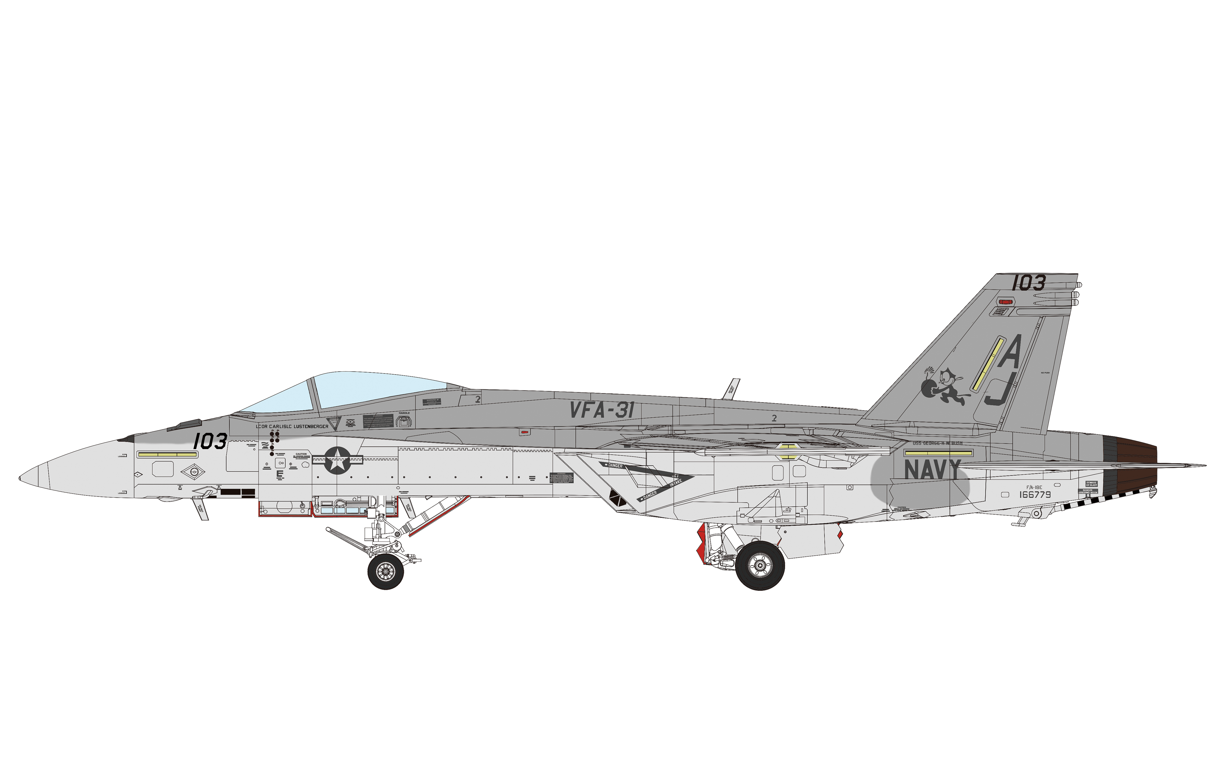 F/A-18E是由美国波音公司研发的一款多用途舰载战斗机,绰号“超级大黄蜂”。它从F/A-18A/C“大黄蜂”改进而来,从一款偏重对地攻击的战斗机演变为既可争夺制空权,又能胜任多种对地/对海作战任务的多用途战斗机。该机表面使用了可吸收雷达波的特殊材料涂层,可大幅减少雷达反射面积,具备了隐身作战能力。全机多达11个武器挂载点,可挂载包括联合直接攻击弹药(JDAM) 和联合防区外武器(JSOW)在内的几乎美国海军全部弹种。作为美国海军现役的重要舰载战斗机,F/A-18E“超级大黄蜂”参加了近年来美军在全球多地的作战任务。