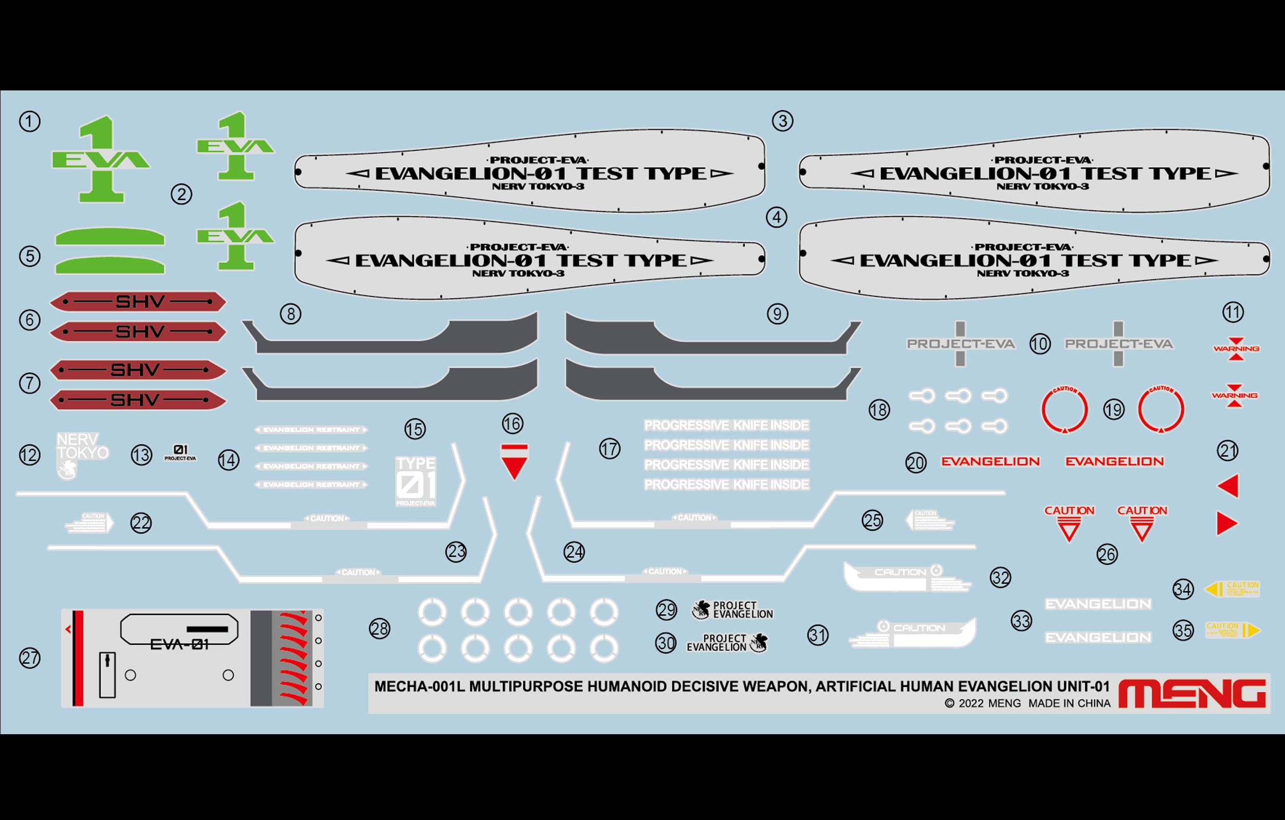 MECHA-001L 泛用人形决战兵器 人造人新世纪福音战士初号机是MENG推出的大比例悦色版拼装模型套件。该套件完成后,高470毫米,宽120毫米。悦色版拼装模型采用免胶预上色设计,只需组装,无需喷涂。套件采用一体成型技术制造活动关节,拥有良好的稳定性和可靠性,同时具备高可动性,可以轻松还原初号机在新剧场版中各种经典姿态和动作。精心打造灯光组件:眼睛采用常亮灯设计,胸部核心采用呼吸灯设计,通过背部插入栓的安装来开启/关闭灯光。附带丰富的武器配件,包括高频震动粒子刀、电磁步枪、回转式多管机关炮、全长62厘米的卡西乌斯之枪(金属杆身)。配备10种软胶手型,可更好配合不同动作及持握武器,预涂装使用的软胶专用漆也能减少把玩过程中掉漆的可能性。套件包含精美水贴。