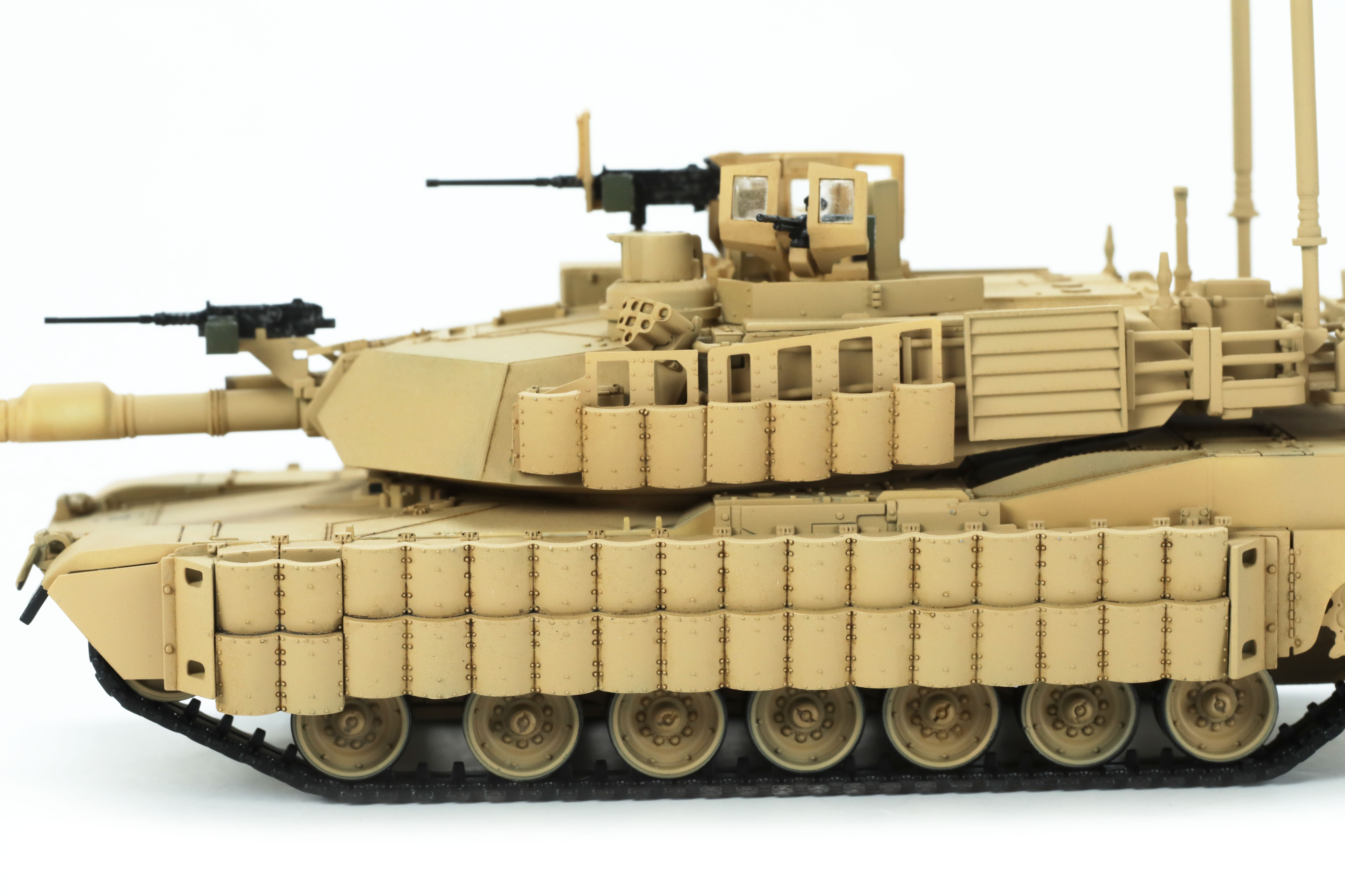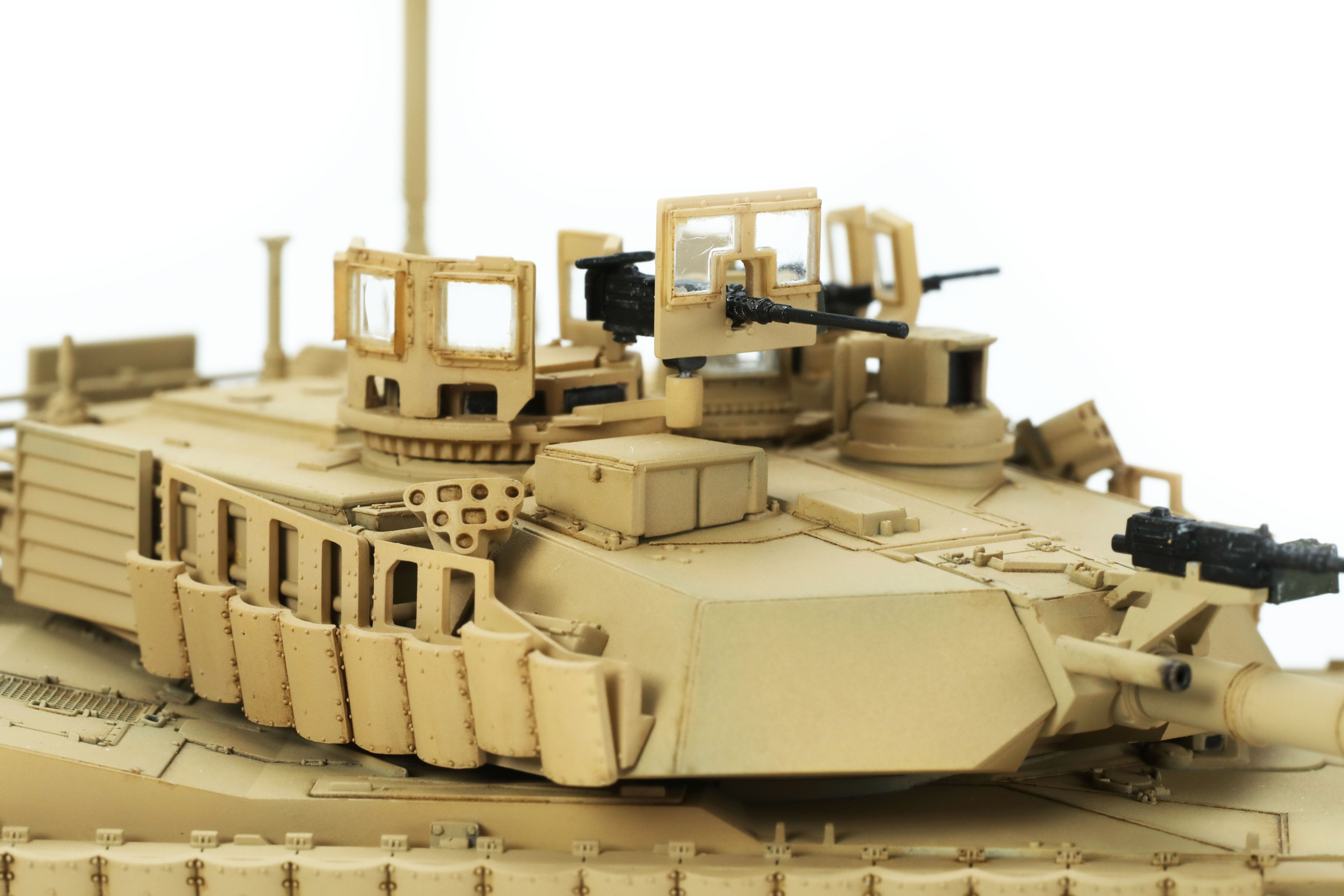 MENG推出的1/72系列产品72-003美国M1A2 SEP“艾布拉姆斯”TUSK II主战坦克拼装模型秉持简易拼装理念设计,完成后约长140毫米,宽61毫米,高47毫米。套件包含全车的附加反应装甲,并提供半拼接式履带。
