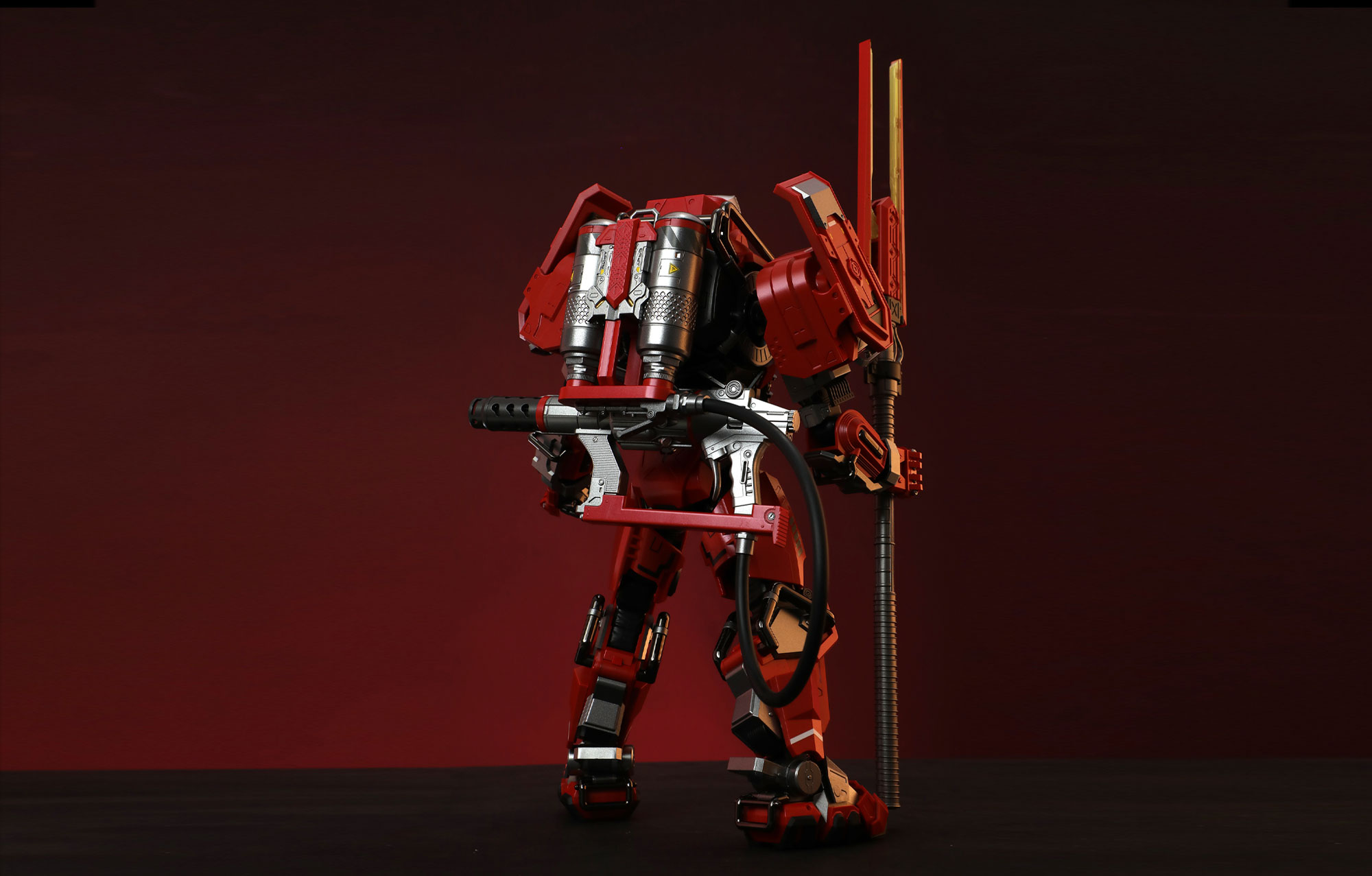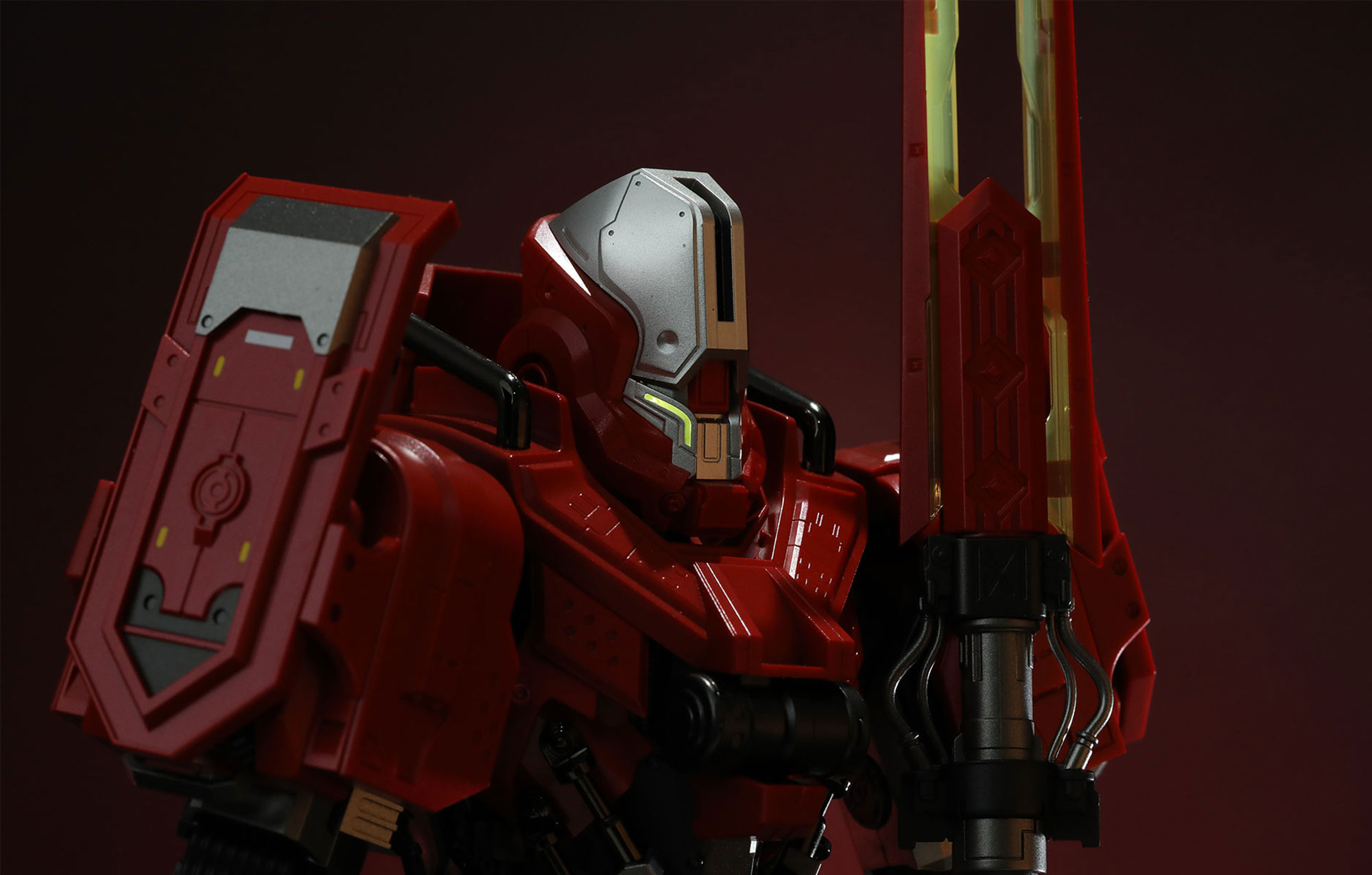 这是《灵笼》中光影会专用重立体,红色涂装以及特型头盔的设计都是在彰显光影会的权威。背部的燃料模块连接其专配武器——长兵电戟,在连接状态下能独立供给电戟能源,释放脉冲高压电击,快速制伏不法者。