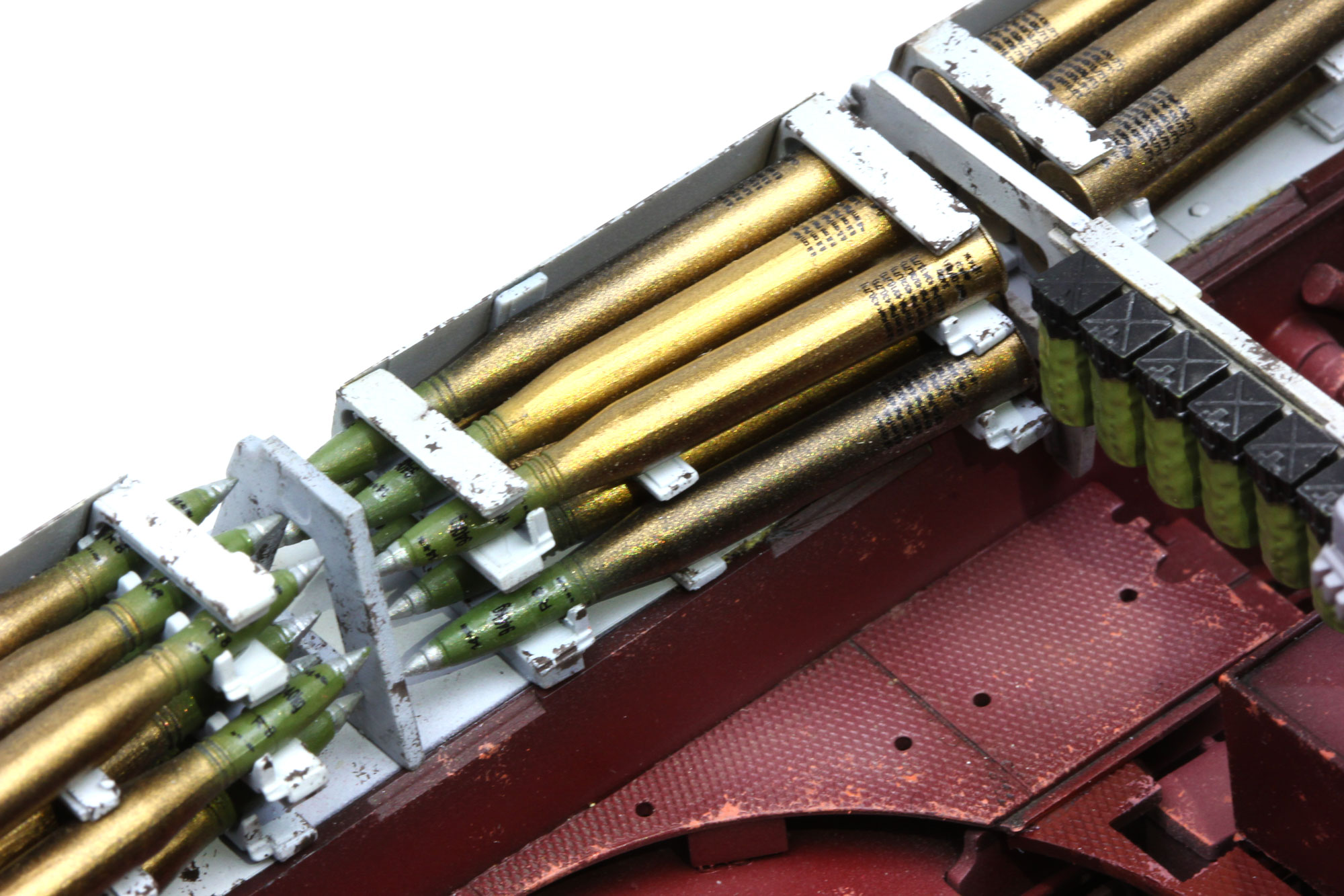 底盘弹药架中附有多种炮弹,同时炮弹为独立零件,方便您制作独具细节的作品。