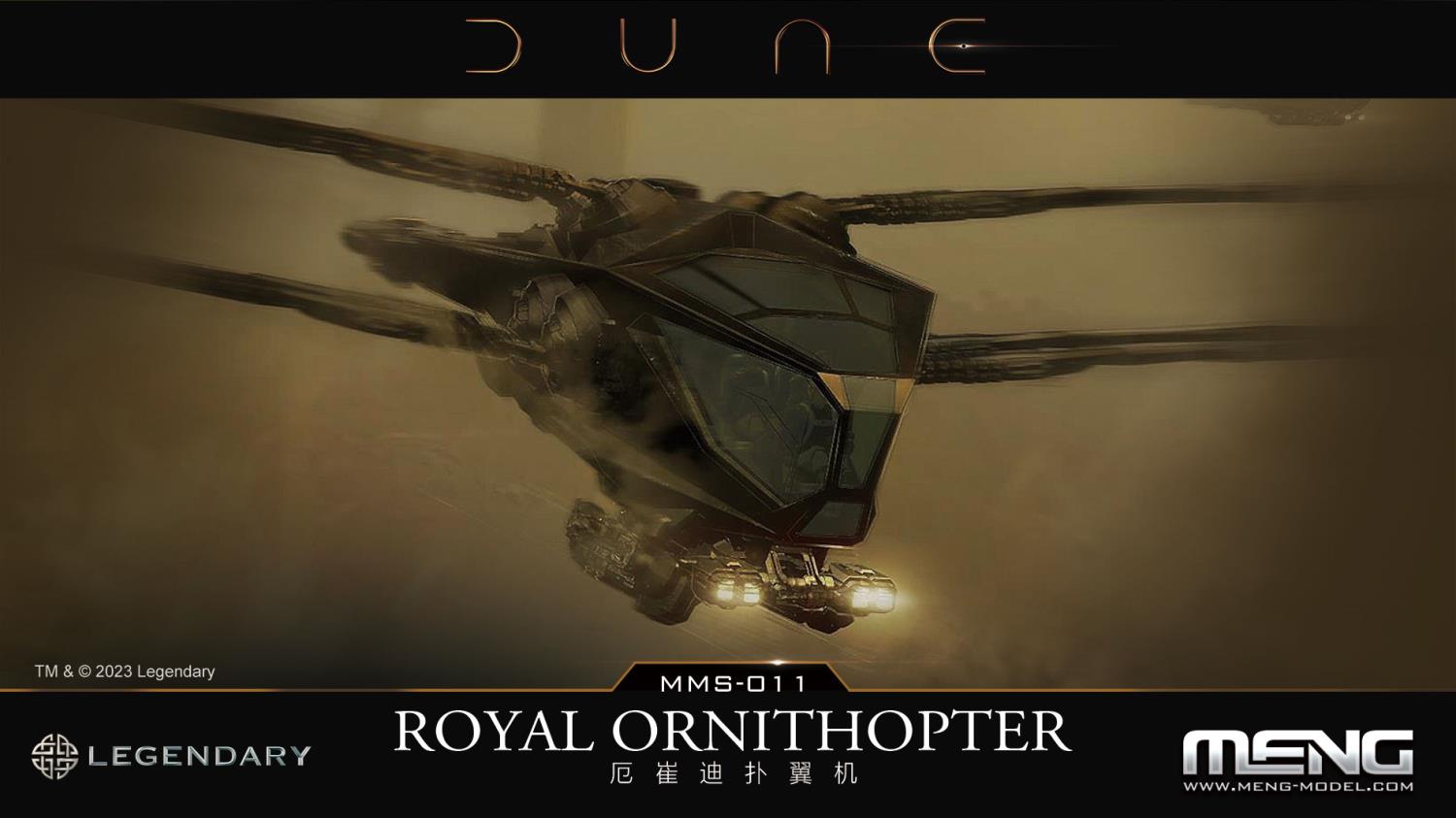 MMS-011《沙丘》厄崔迪扑翼机拼装模型,拼装完成后,翼展169毫米,长95毫米,并附带精美水贴纸和展示支架。