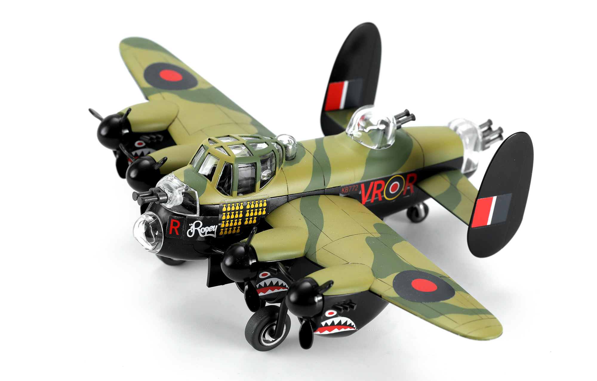 1939年第二次世界大战的爆发,促成了英国“兰开斯特”轰炸机的诞生。“兰开斯特”有着浓郁的古典气息,看上去就像个优雅的绅士。它采用全金属的机身、中单翼和双垂尾的布局;左右机翼下各装了2台“灰背隼”发动机;机头、机身和机尾各有一个搭载了7.7mm机枪的炮塔;宽大的机身让它拥有了一个巨大的弹舱,可以挂载各种各样的炸弹。