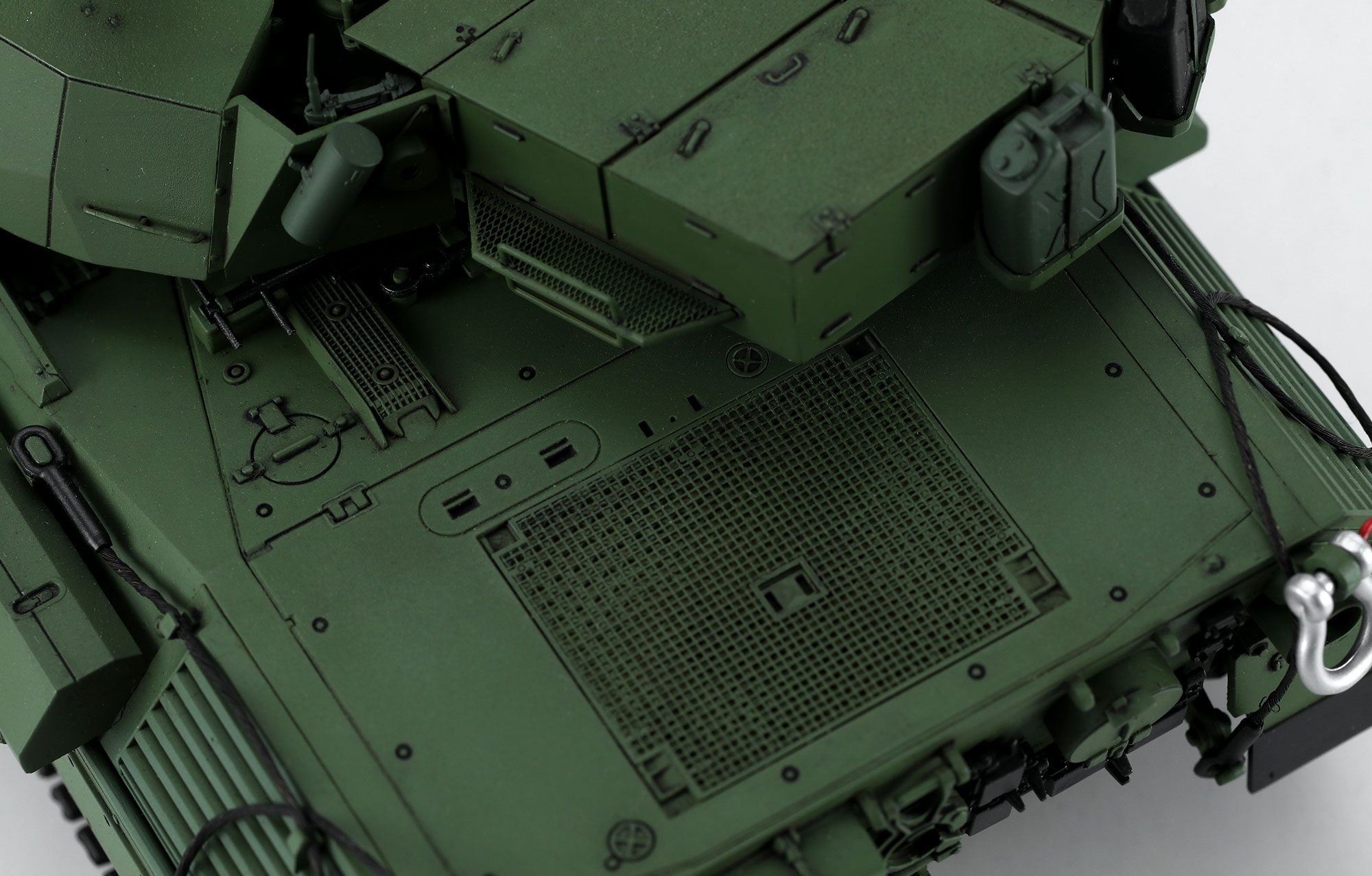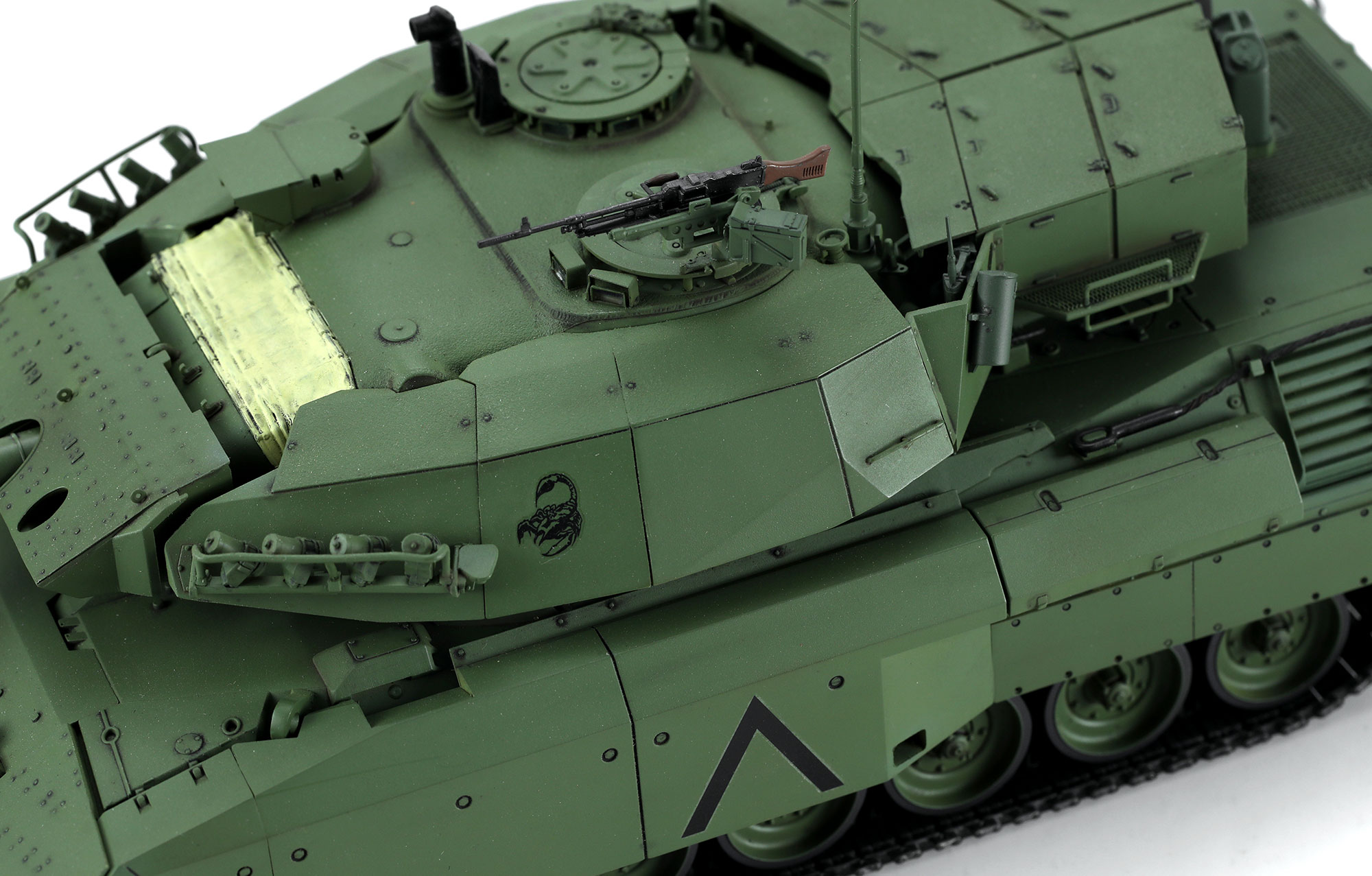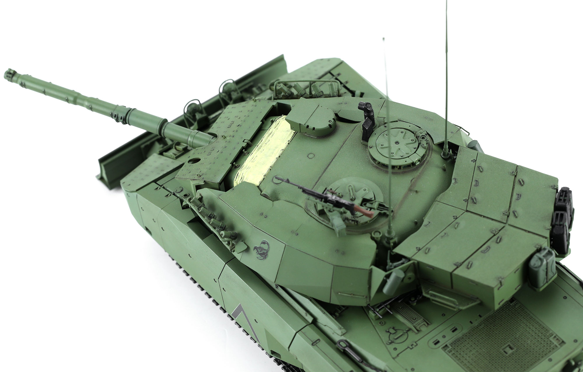 TS-041加拿大主战坦克“豹”C2“马克萨斯”及推土铲模型全长270.2mm,高86.5mm,共计500个零件。套件带有活动悬挂、一条式TPE材质履带;车灯、潜望镜均为透明件,含精密蚀刻片;推土铲可升降活动;同时完整还原附加装甲遮挡下的细节。