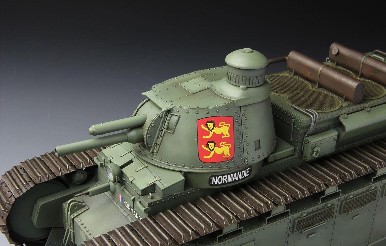 1/35比例法国2C超重型坦克塑胶拼装模型,模型全长293.2mm,宽85.2mm。精密再现了一战期间设计的首款铆接结构超重型多炮塔坦克的特色;车灯为透明零件;动力舱的所有散热网均以蚀刻片呈现;免胶拼接式活动履带,制作简单;提供90号、93号和97号车三种涂装。