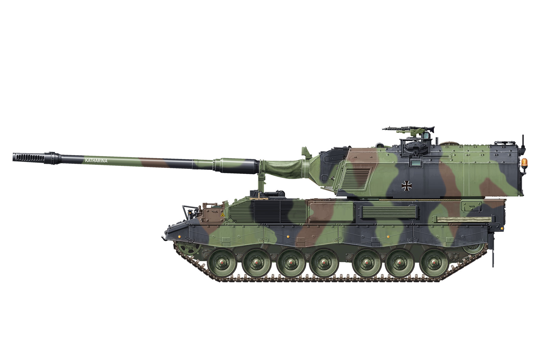 Panzerhaubitze 2000自行榴弹炮是全球最先进的自行火炮之一。该车利用了大量“豹”1、“豹”2主战坦克的底盘部件,配备MTU MT881型发动机,机动性能出众;装备莱茵金属155mm 52倍口径火炮,拥有先进的观瞄及火控系统;60枚炮弹在车体中成马蹄形竖直排列,自动装填系统更是实现了全部炮弹的自动管理。该车于1998年开始装备德国陆军,后来又进入意大利、荷兰、希腊陆军服役。