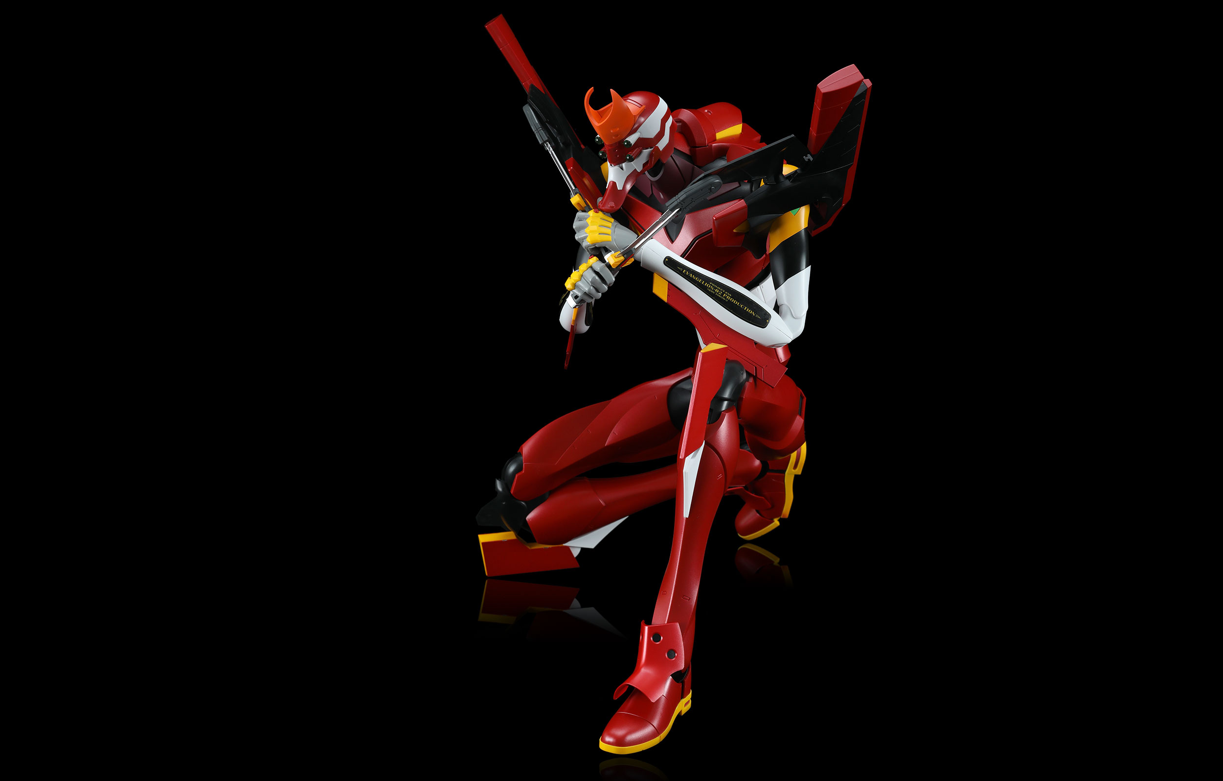 Multipurpose Humanoid Decisive Weapon, Artificial Human Evangelion Production Model-02 is the first Production Model Evangelion after the Evangelion Proto Type-00 and Unit-01 in the Evangelion: New Theatrical Edition movies. Its first pilot is the Captain Asuka Shikinami Langley. As a Production Model Evangelion, it has the common Evangelion features like generating A.T. Field. The enrichment of equipment and the maturity of each mechanism have greatly enhanced its performance. Its eye-catching appearance includes four eyes and two hornlike cheek extensions. It's in red color which is liked by its pilot Asuka.