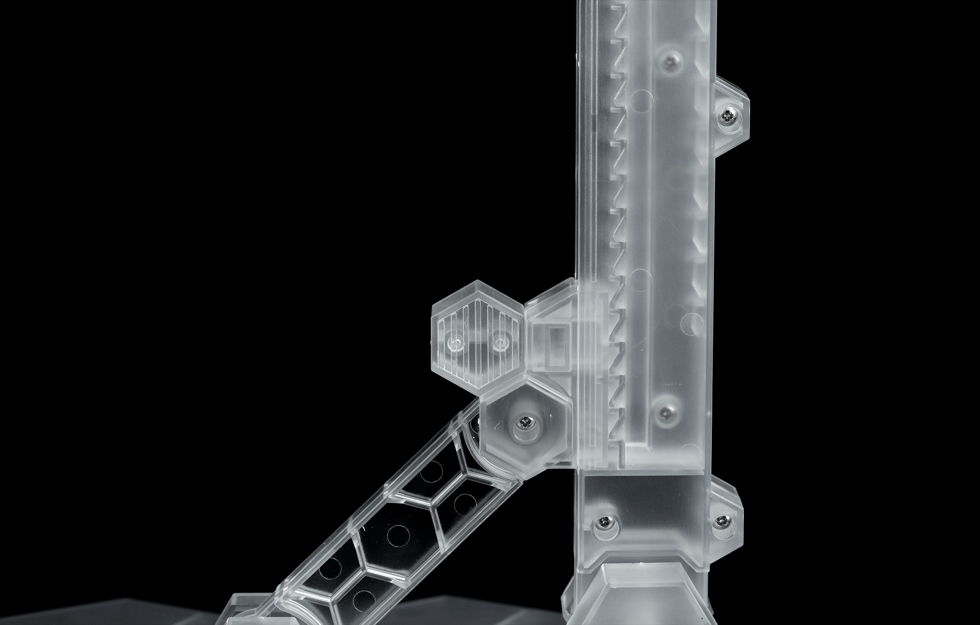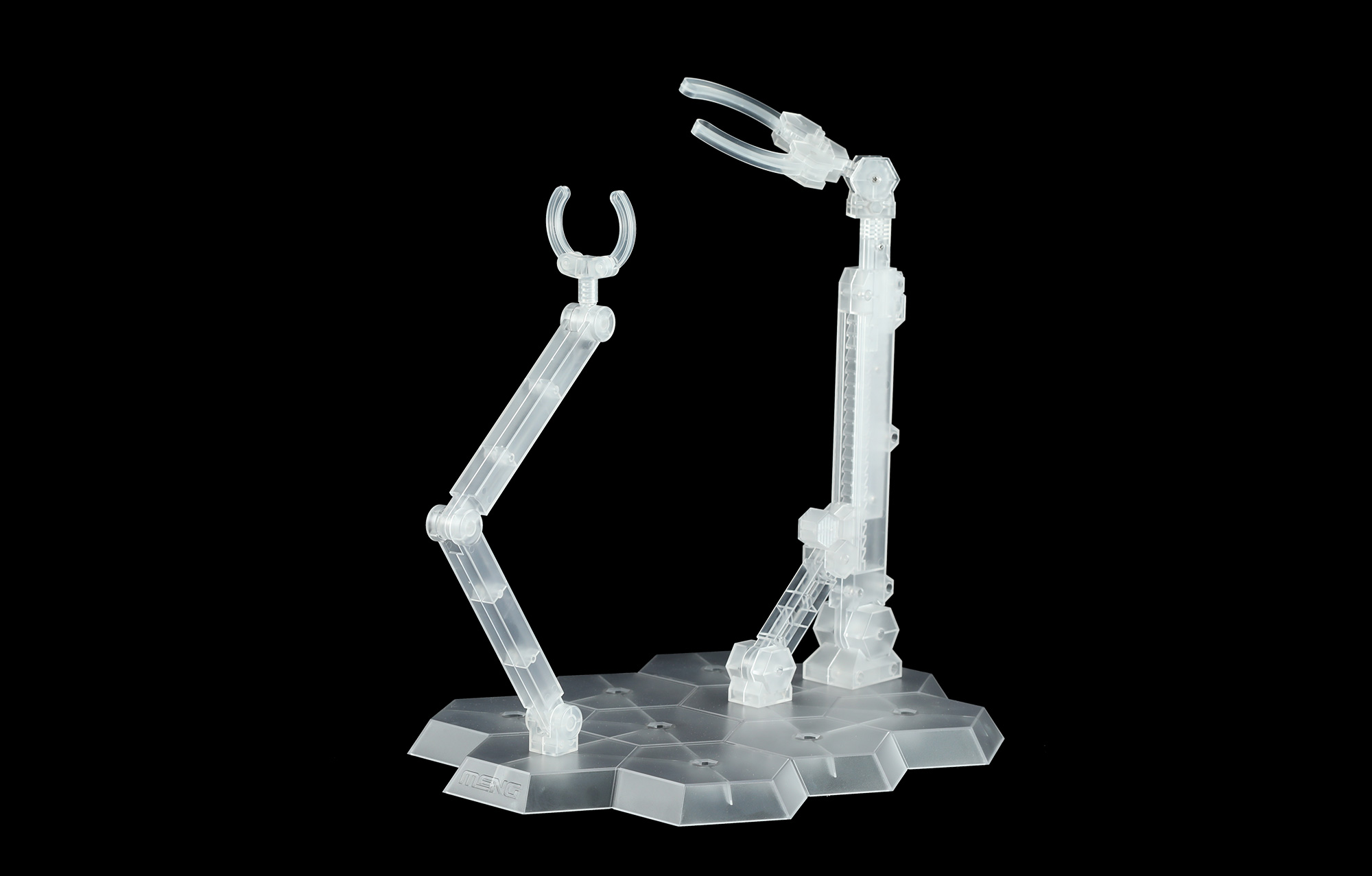 The MENG MECHA-AC001 Mecha Model Stand is a plastic model kit. This stand has locking mechanisms which provide strong carrying capacity. This versatile stand can accommodate large-scale models (e.g. the MECHA L series). A small stand can be detached from the main stand to accommodate small-scale models (e.g. the MECHA M series).