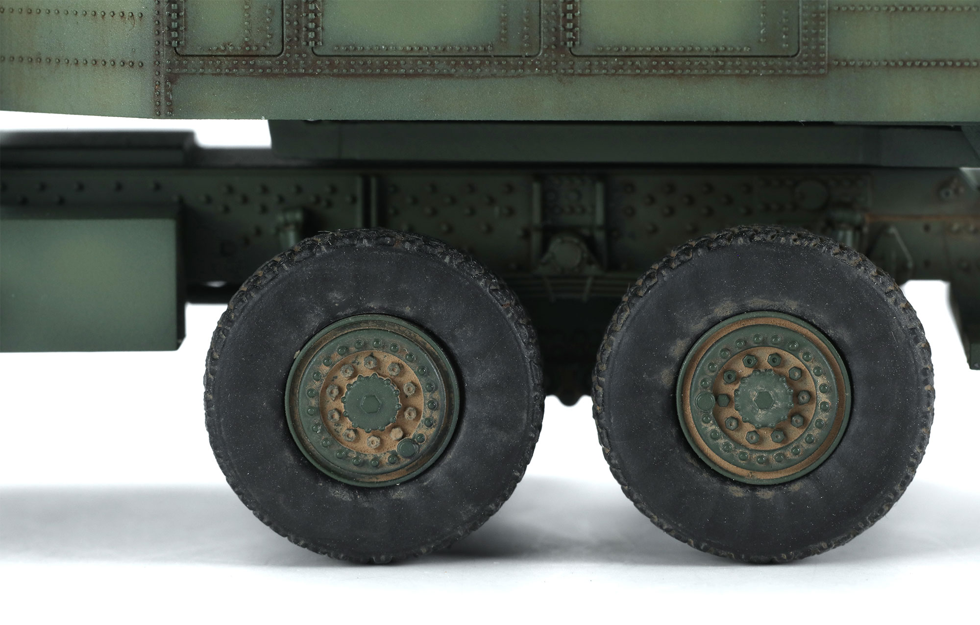 The M142 HIMARS (High Mobility Artillery Rocket System) is a wheeled launcher variant developed by the U.S. military based on the M270 MLRS (Multiple Launch Rocket System). It is equipped with a six-pack rocket launcher. Its standard rockets have a range of up to 45 km, and the ATACMS (Army Tactical Missile System) can reach a range of 300 km. The lightweight design brings its combat weight to only 10.9 tons, and it can reach a top speed of 86 km/h. Additionally, it can be airlifted by a C-130 transport plane and deployed rapidly upon reaching the combat zone, combining mobility with firepower.