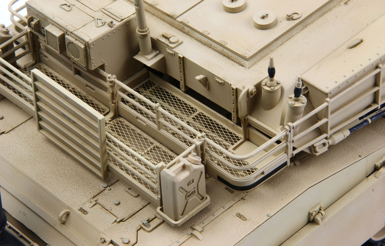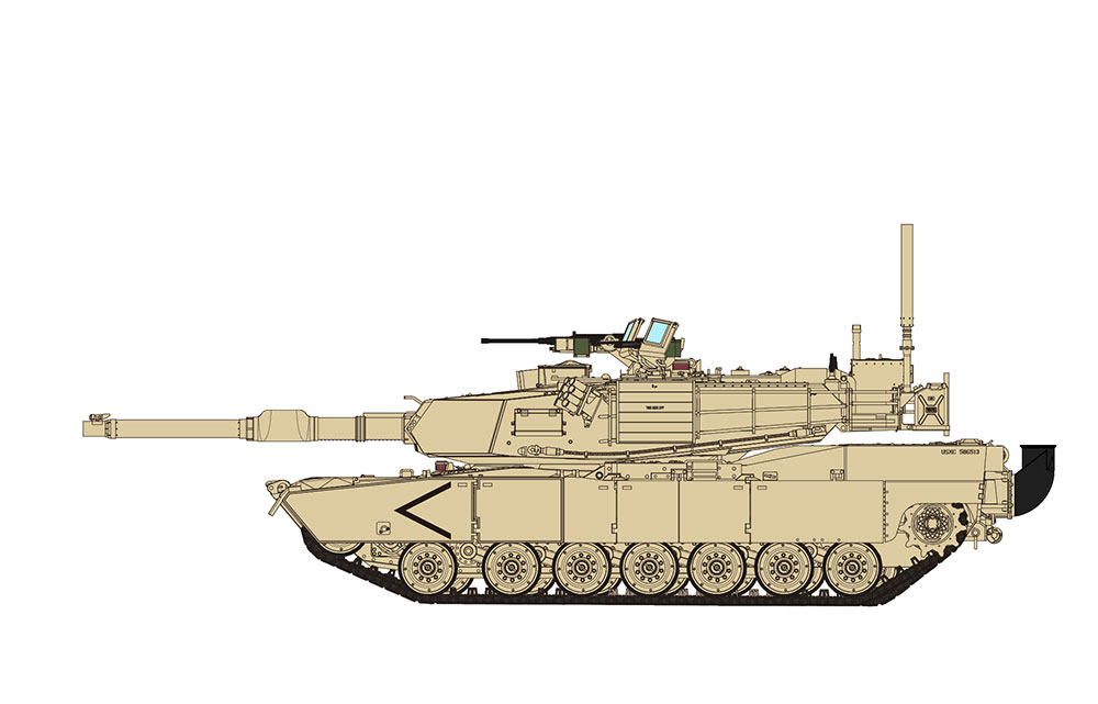 The M1 Abrams main battle tank made its name in the Persian Gulf War in 1991. At that time, the main variant used by the U.S. military was the M1A1 upgraded from the M1 tank. The M1A1 had great improvement in firepower and protection. During the 100-hour combat in the Operation Desert Sabre, the M1A1 tanks were never penetrated in the front by the Iraqis. Instead, they destroyed many Iraqi tanks and other vehicles. Nowadays, many upgraded M1A1 tanks are still in service with the U.S. military. The M1A1 AIM tank of the United States Marine Corps (USMC) has some unique features, like the Missile Countermeasure Device (MCD) mounted on top of the turret, and the engine air intake port and exhaust port of the Deep Water Fording Kit. All these features are designed for the USMC’s special combat requirements. Many U.S. Army M1A1 tanks have been installed with the Tank Urban Survival Kit (TUSK) similar to that of the M1A2 tanks.