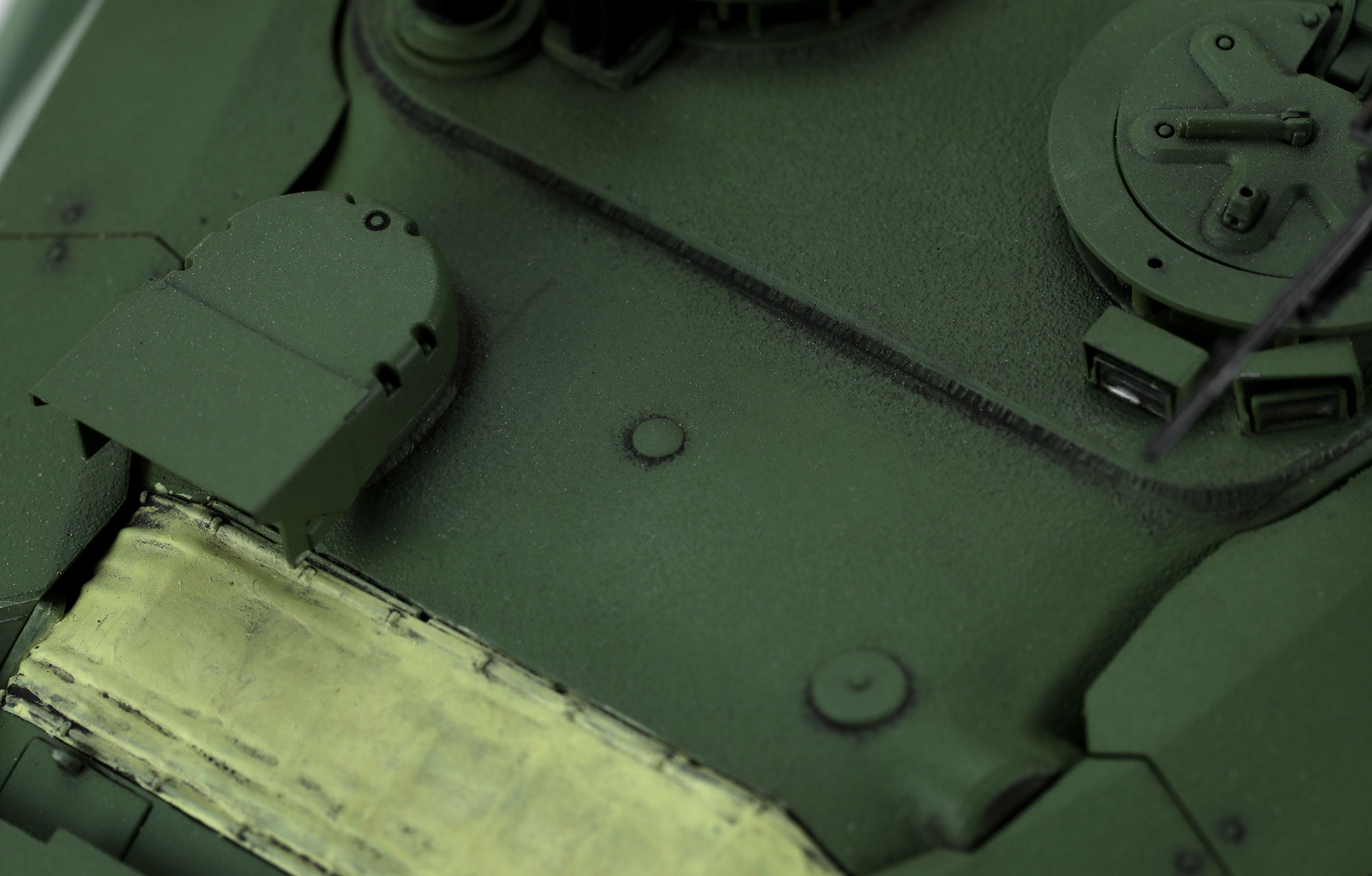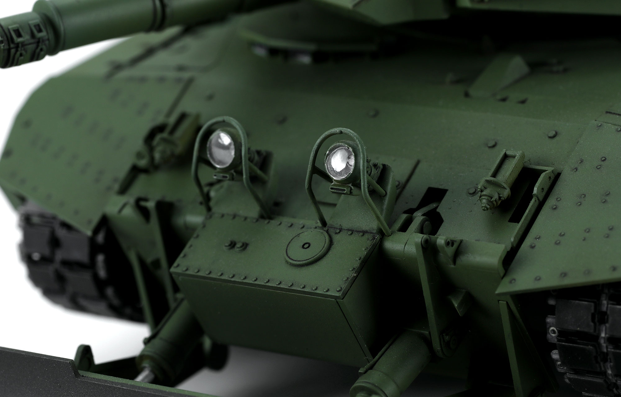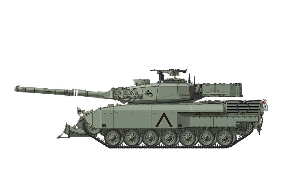 This TS-041 Canadian Main Battle Tank Leopard C2 MEXAS w/Dozer Blade kit has a total of 500 parts. This kit includes movable suspension, one-piece TPE tracks, clear light and periscope parts and fine PE parts. The dozer blade is liftable and lowerable. The details under the add-on armor are completely replicated.