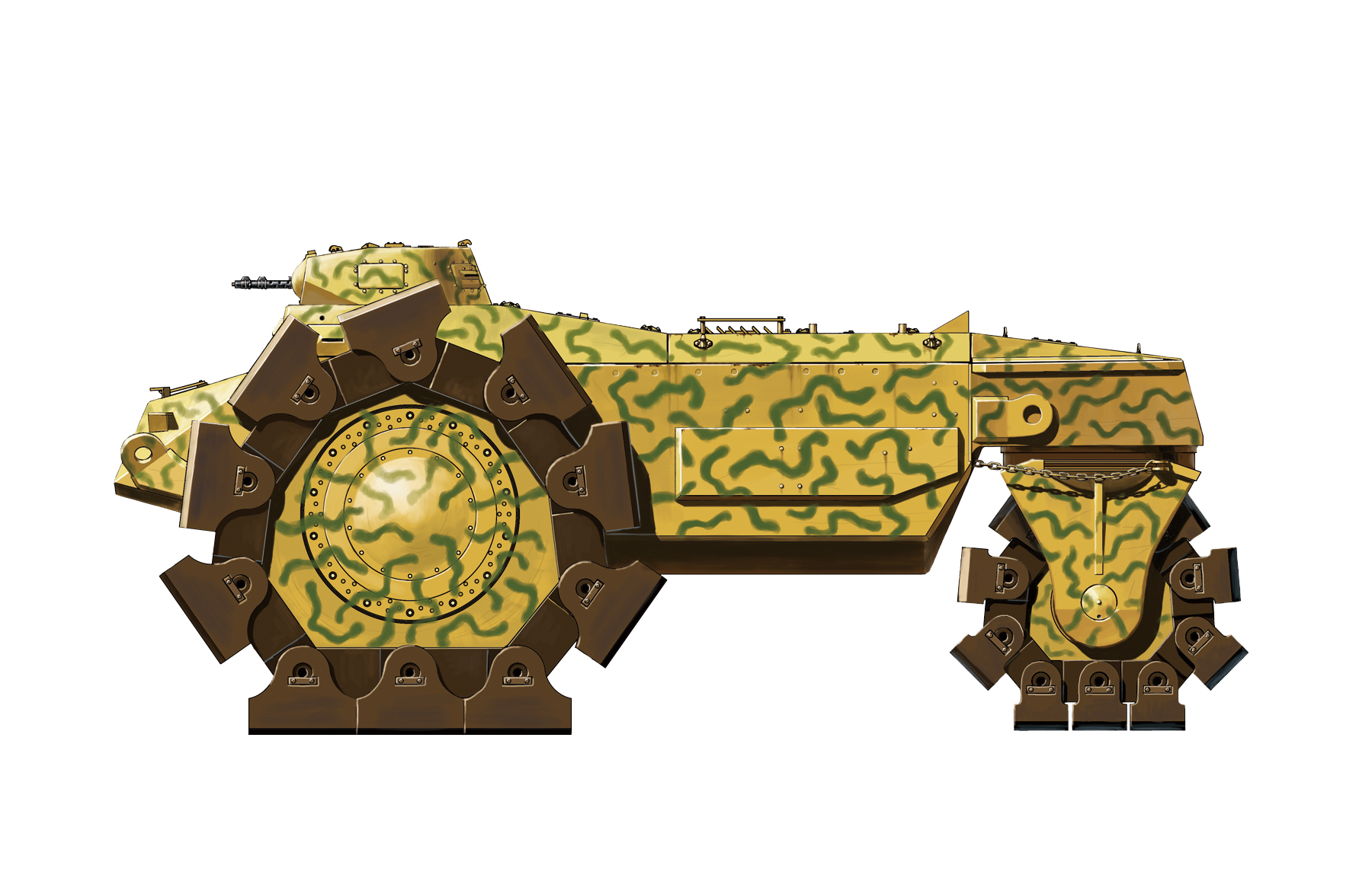 Vskfz 617 is a German mysterious weapon which used in World War II and has an unknown story. The strong and gigantic wheels are used for the detonation of mines to obtain a cleared access path for German infantry and AFVs. The vehicle has a turret of Panzer I tank which is equipped with mg-34 machine guns ensuring the close defense of the machine. It is said that VsKfz 617 had been through the battle of Kursk. According to the result of soviet texts, the vehicle is not a good minesweeper.