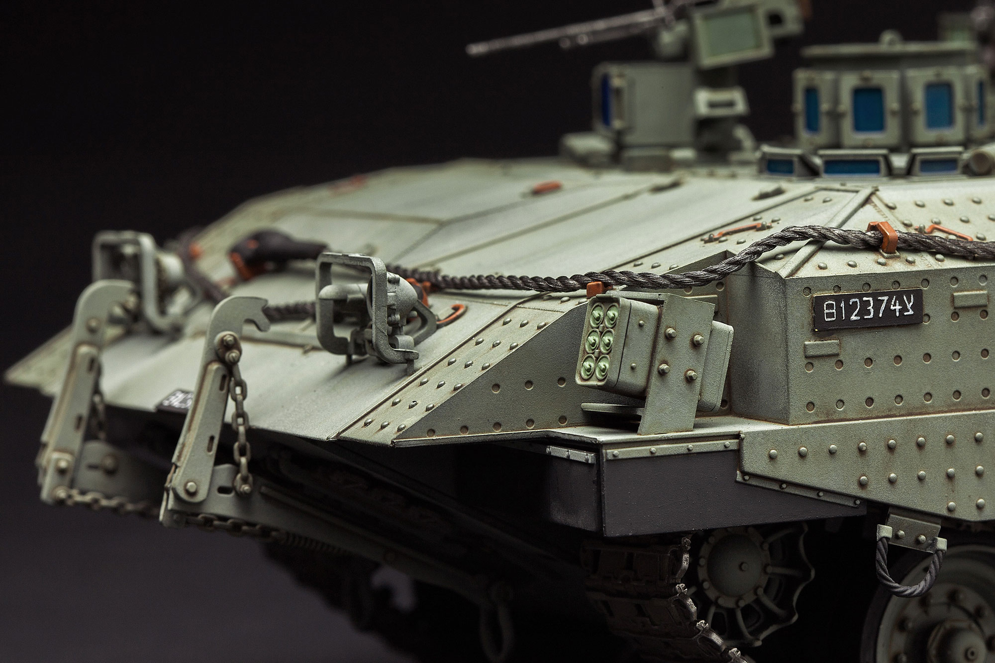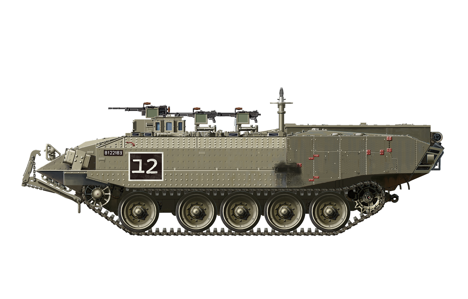 The Achzarit heavy armoured personnel carrier (late) is updated from its early version. It received a modification of its suspension where original wheels and tracks were replaced by Centurion wheels and new reinforced tracks. It’s equipped with an OWS (Overhead Weapon System) and also with a pair of smoke grenade launchers in the front of the hull. This vehicle is the cutting edge of the Mechanized Infantry of the IDF, and it saw service during the 2nd Lebanon war in 2006, operation "Cast Lead" in 2009 and "Pillar of Defense" in 2012, as well as in operation "Protective Edge" in July 2014.