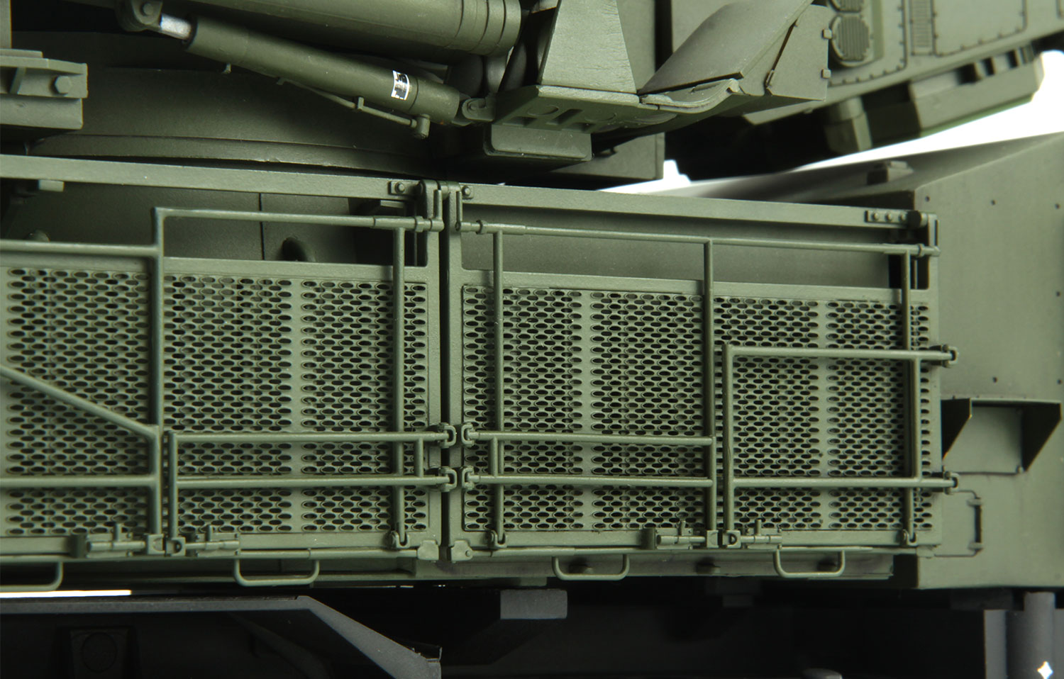 This SS-016 Russian Air Defense Weapon System 96K6 Pantsir-S1 kit features rotatable turret, and movable missile launching mechanism, guns and radar. Cab interiors are included. The sunroof can be built open. The steering wheels are steerable.
