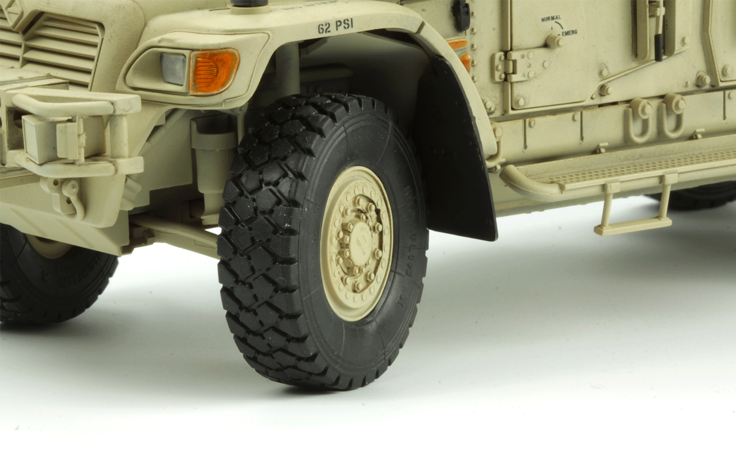This VS-009 British Army Husky TSV (Tactical Support Vehicle) plastic model kit has a total of 320 parts. This kit features perfectly reproduced crew compartment interiors. Doors can be built open or closed. The roof weapon station is rotatable. Front wheels are steerable. Clear glass parts are included and precision PE parts are included.