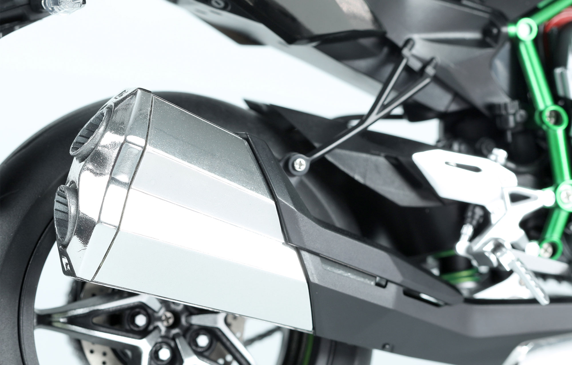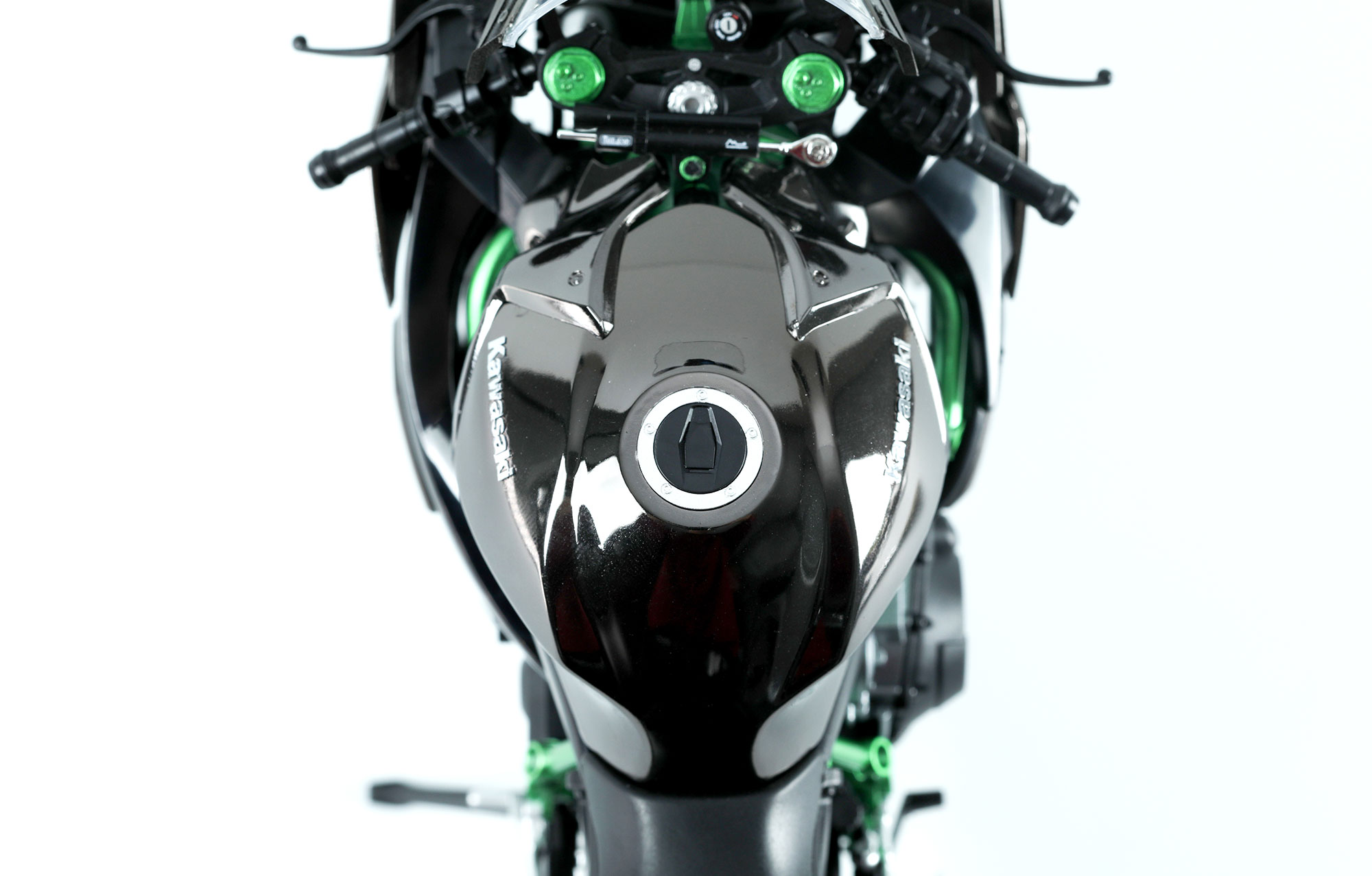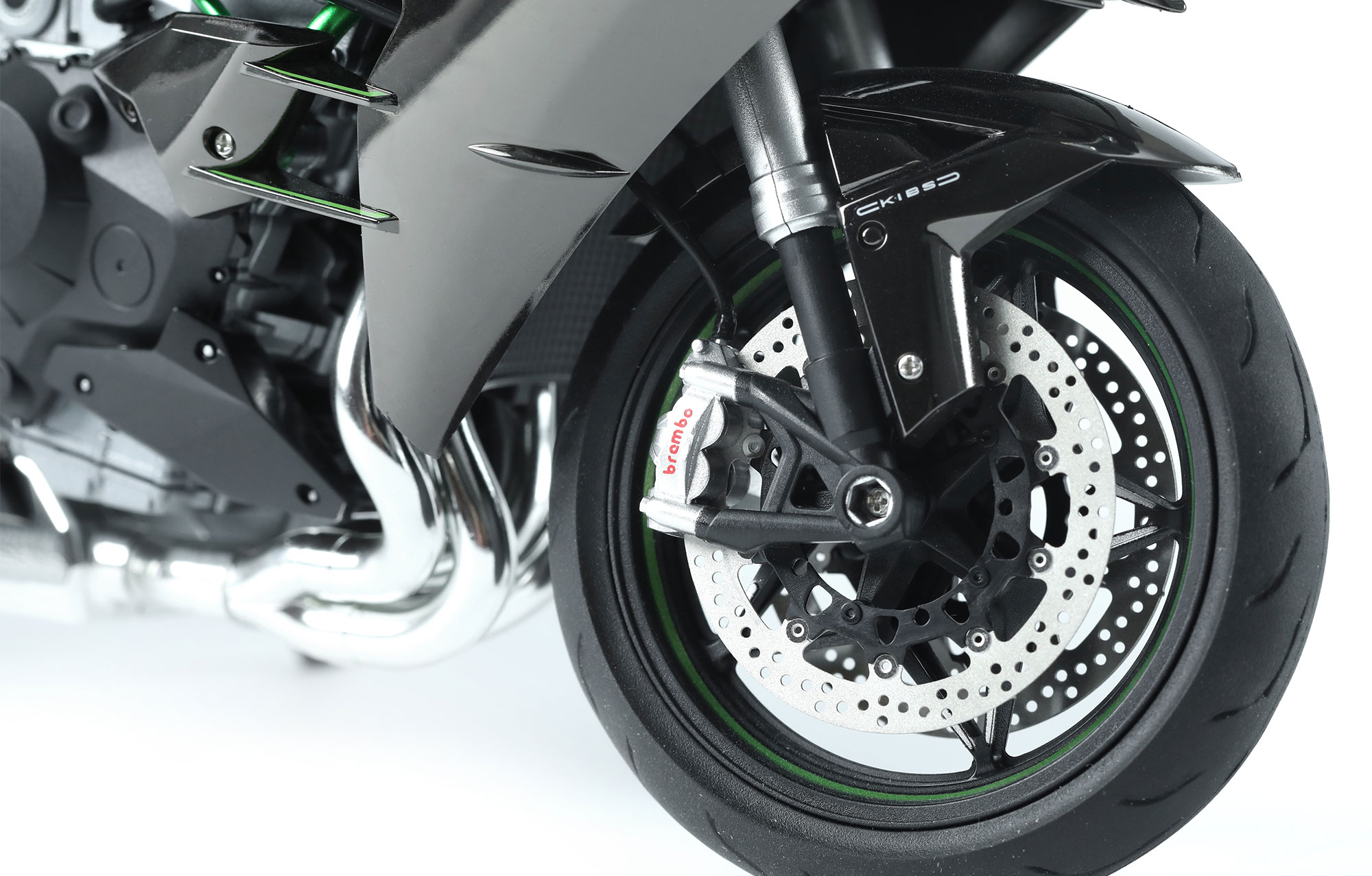This MENG MT-002s 1/9 Kawasaki Ninja H2™ (Pre-colored Edition) is a precision motorcycle model kit officially licensed by Kawasaki Heavy Industries, Ltd. Thanks to its snap-fit design and pre-colored parts, there’s no need to paint the model during the assembly process. Front and rear shock absorbers and the steering damper are movable. All lights are represented by clear parts. Two different electroplating technologies are applied in preparing the silver mirror finish the exhaust pipes. This kit includes seat and tires made of vinyl material, exquisite stainless steel brake discs, pre-colored photo-etched parts, decals and reflective stickers.