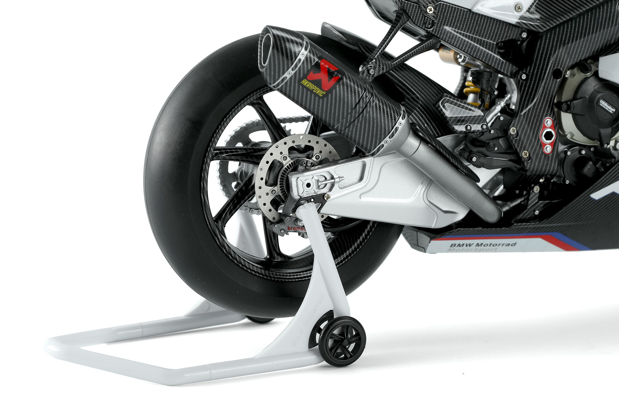 The BMW HP4 RACE is made by BMW Motorrad in a limited production run of 520 units. HP in HP4 is the abbreviation of High Performance, which means the top performance. 4 stands for a four-cylinder engine. RACE indicates that the motorcycle is built for the racetrack. This motorcycle is built by hand in BMW’s factory in Germany, and each one has its own exclusive number. To pursue the ultimate performance, the BMW HP4 RACE has a full carbon fiber frame for the first time in the world, and the whole vehicle weighs only 146 kg. Powered by a 999cc inline four-cylinder engine with an output of 215hp, it can reach a top speed of 300 km/h. Furthermore, Brembo racing braking system, Öhlins FGR 300 and TTX 36 GP shock absorbers, Akrapovic top level exhaust system and Pirelli full hot-melt tires make the BMW HP4 RACE a racetrack beast that can compete with the motorcycles from the top motorcycle races like MotoGP and WSBK.