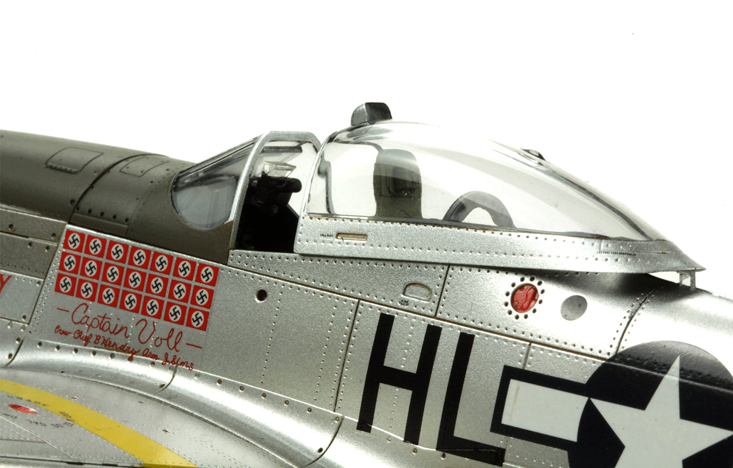 P-51D/ K were the most important variants of the Mustang family. The only difference between P-51D and P-51K was the difffifferent propellers. The use of bubble canopy gave them the best visibility among all Mustang variants. The six 12.7mm machine guns could easily tear apart the fragile Axis fighters. In 1944, Mustangs were also fitted with the amazing K-14 gyro computing gunsights . Pilots only needed to preset the gunsight and entangle the target in the sighting ring. The calculation of lead compensation would be given by the analog computer. That was far more advanced than the iron gunsights used on Axis aircrafts. P-51D/ K were also the most produced Mustang variants . More than 9,000 were made.