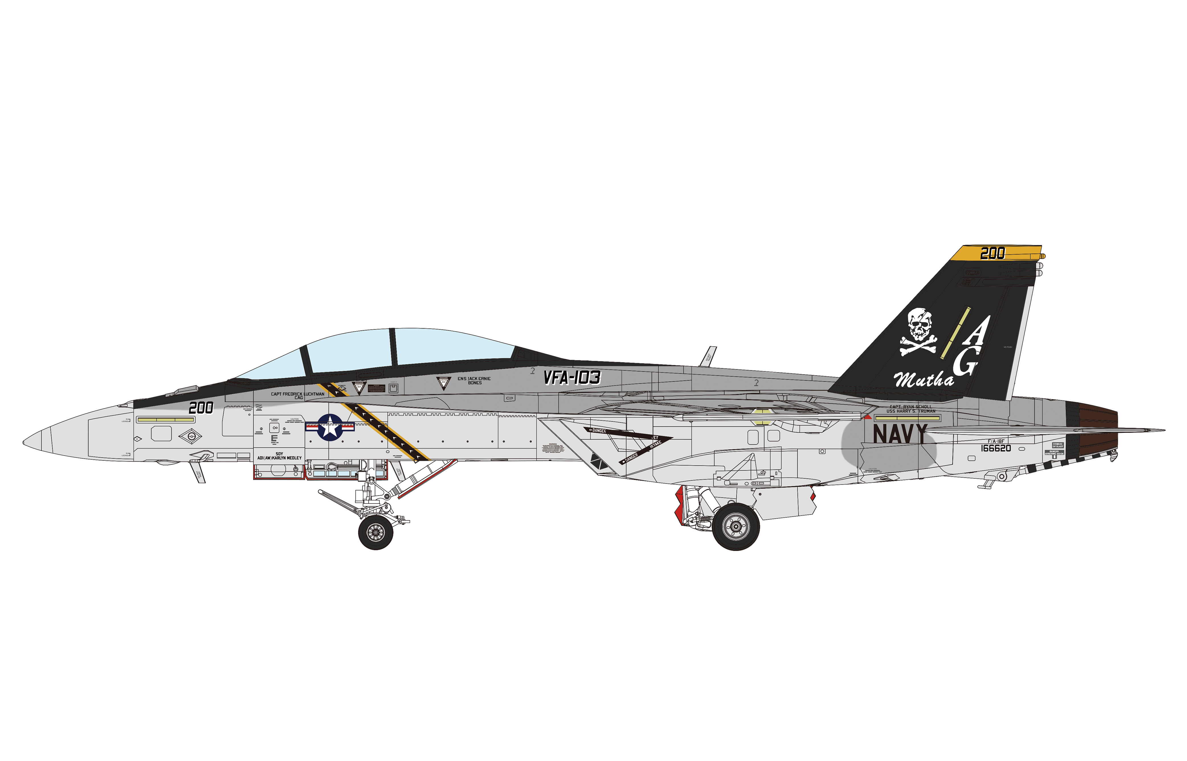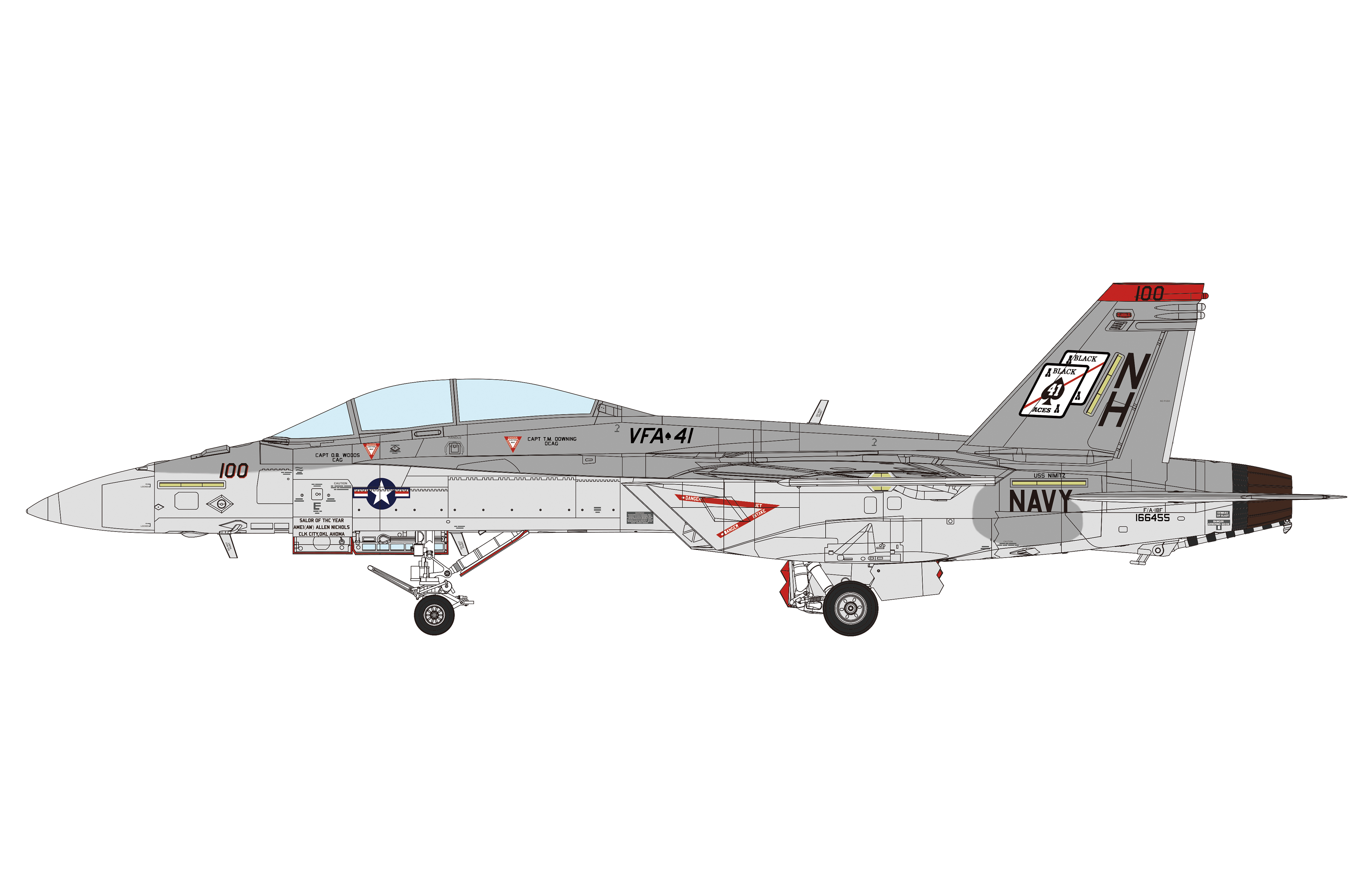 The F/A-18F, nicknamed Super Hornet is a two-seat carrier-based fighter aircraft developed by The Boeing Company. This multirole fighter can perform operations like maintaining air superiority, ground attack, maritime strike, air control and refueling of other aircraft. The surface of this aircraft is coated with a special material that can absorb radar waves to greatly reduce the radar reflection, and it has the capability of stealth combat. It has as many as 11 weapon mounting points, and it can carry almost all types of U.S. Navy ammunition including the Joint Direct Attack Ammunition (JDAM) and the Joint Standoff Weapon (JSOW). As an important carrier-based fighter aircraft in active service in the U.S. Navy, the F/A-18F Super Hornet has participated in the U.S. military's combat missions in many places around the world in recent years.