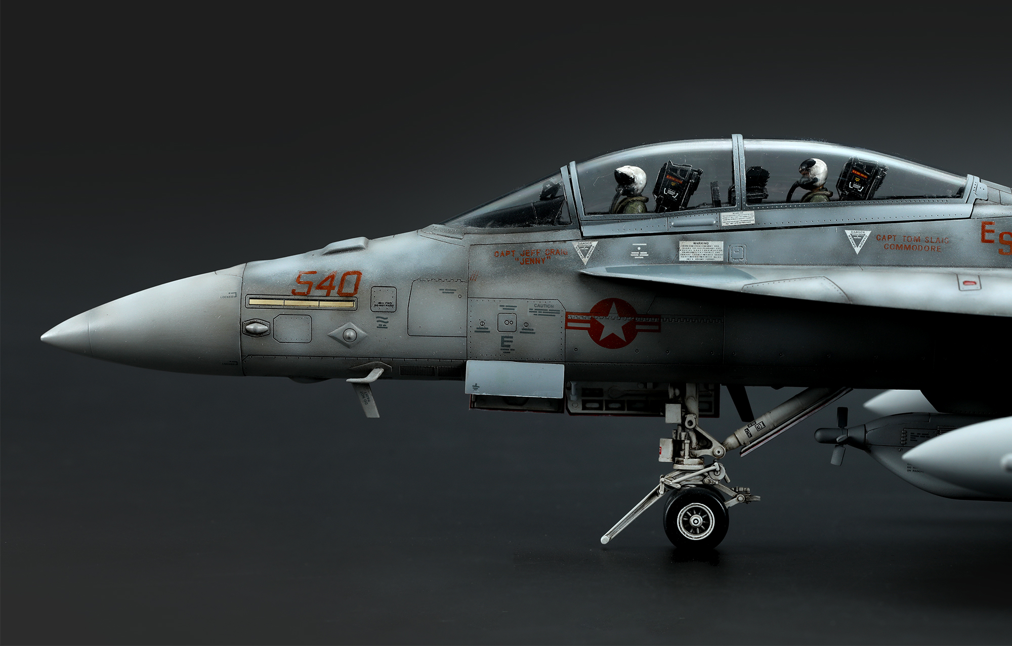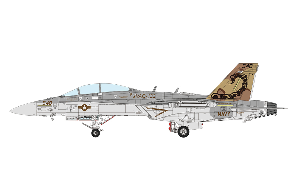This MENG LS-014 1/48 Boeing EA-18G Growler Electronic Attack Aircraft model kit includes ALQ-99 high/low band jamming pods, ALQ-218V(2) tactical receivers and electronic warfare antennae. Its flaps and slats can be installed in retracted or deployed positions. Horizontal stabilizers and rudders are movable. The cockpit and cockpit interior equipment are precisely replicated. The specially designed pluggable main pylons allow the easy change of electronic pods or external fuel tanks; this kit includes the AGM-88 high-speed anti-radiation missiles. This kit includes two U.S. Navy pilot figures, pre-cut stainless steel PE parts and pre-cut painting masks. This kit provides three paint schemes.