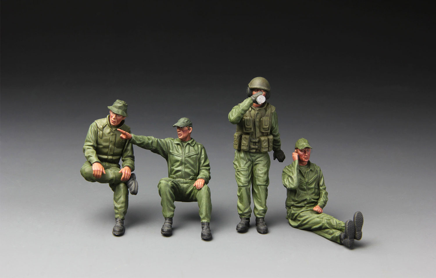 4 tank crew members who are taking a break in different gestures can be built from this kit. These figures have rich facial expressions, natural body gestures and strictly studied uniforms. They can be used with all IDF AFVs in the same scale. We want to express our gratitude to the famous Spanish figure modeler Juan Antonio Perez Marchante who has painted these figures.