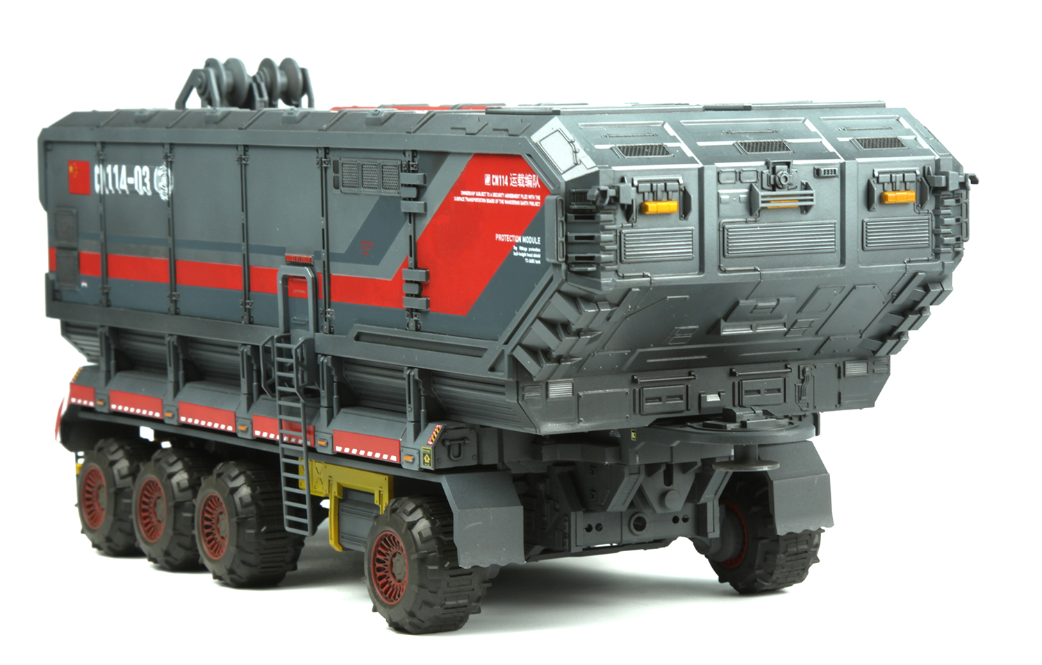 This MMS-001 1/100 Cargo Truck-Transport Truck CN114-03 is a pre-colored snap-fit model kit released based on the vehicles in The Wandering Earth by MENG and China Film Marketing. This kit features pre-colored parts and a snap-fit assembly design. The vehicle exteriors are realistically represented as per original movie design. Two vehicle options are included: the transport truck or iron ore truck. An audio module is provided to play the classic movie lines.