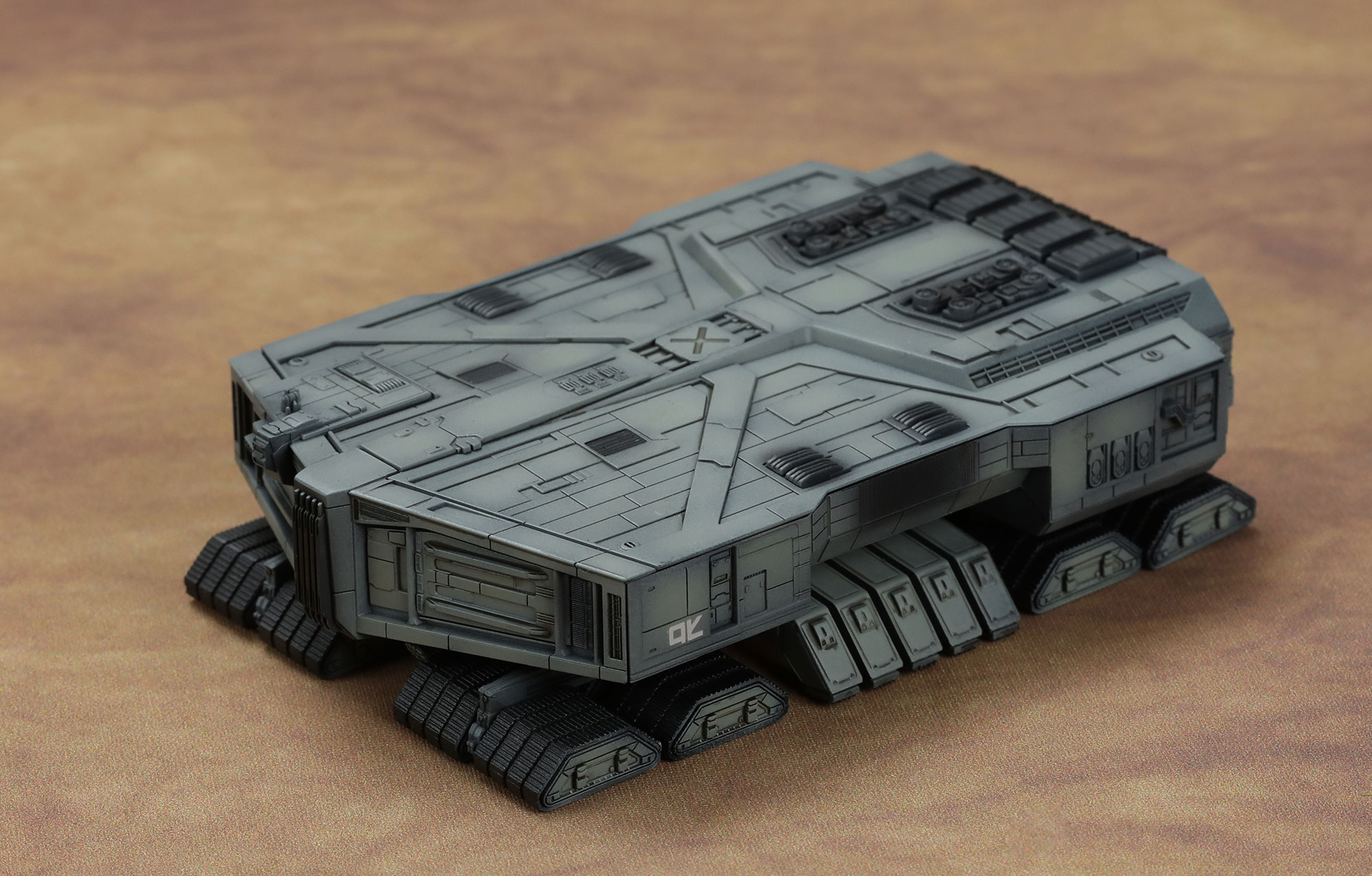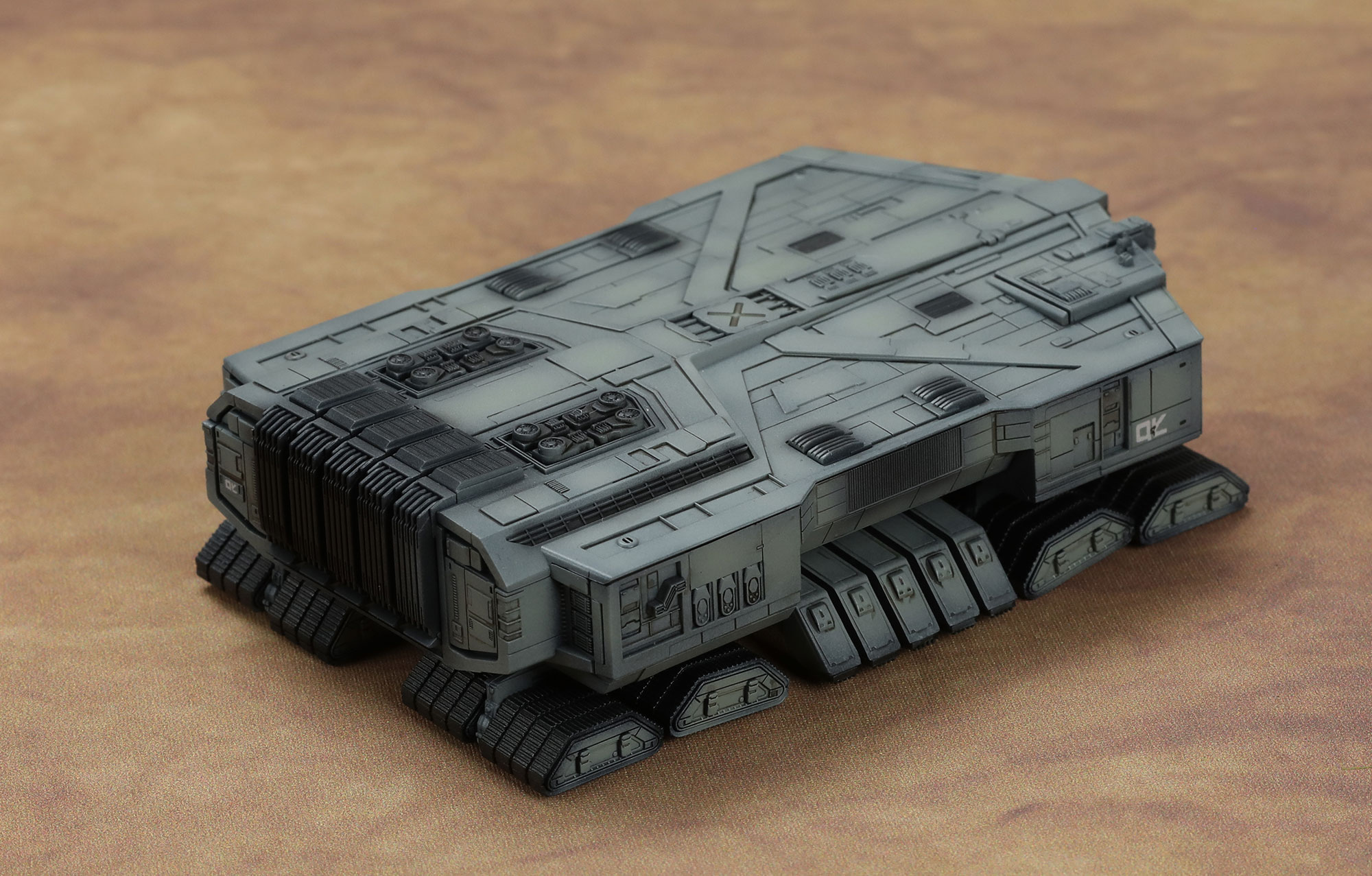 This MMS-013 Dune Spice Harvester model kit has a length of 100mm, width of 65mm and height of 27mm once assembled.